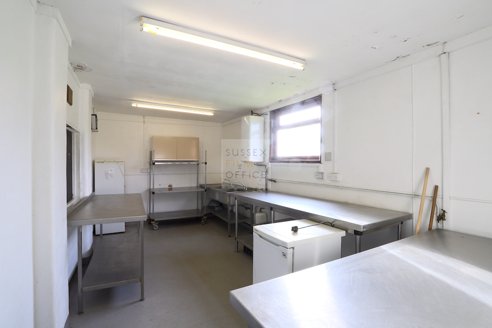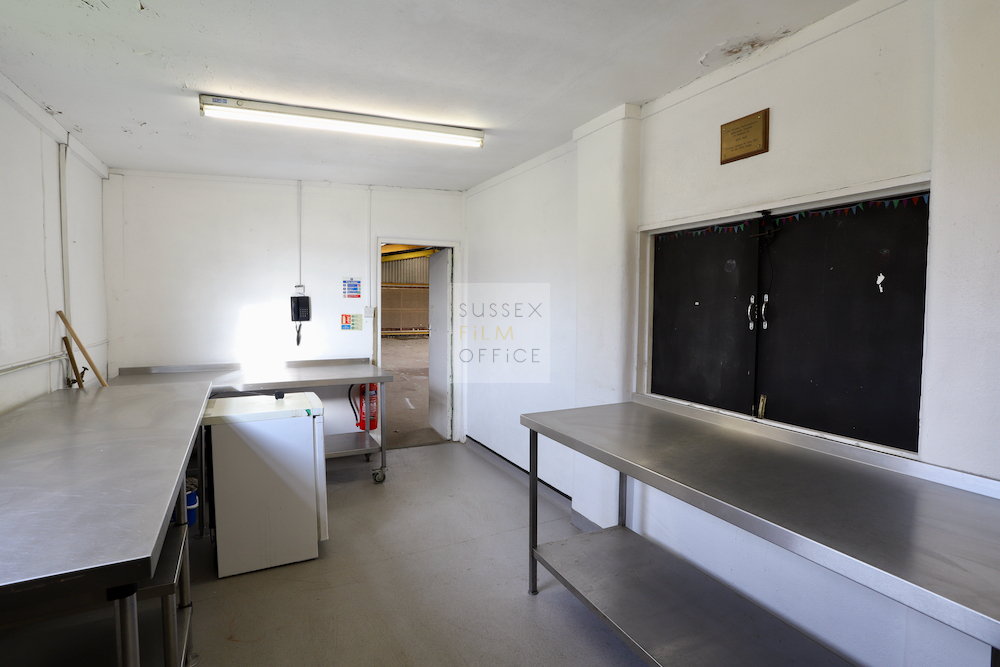 Set in the grounds of a private estate is this large empty wooden style warehouse open on one side with fully equipped commercial-style kitchen. Multi-use possibilities, including farming and industrial themes, making it a great filming location.