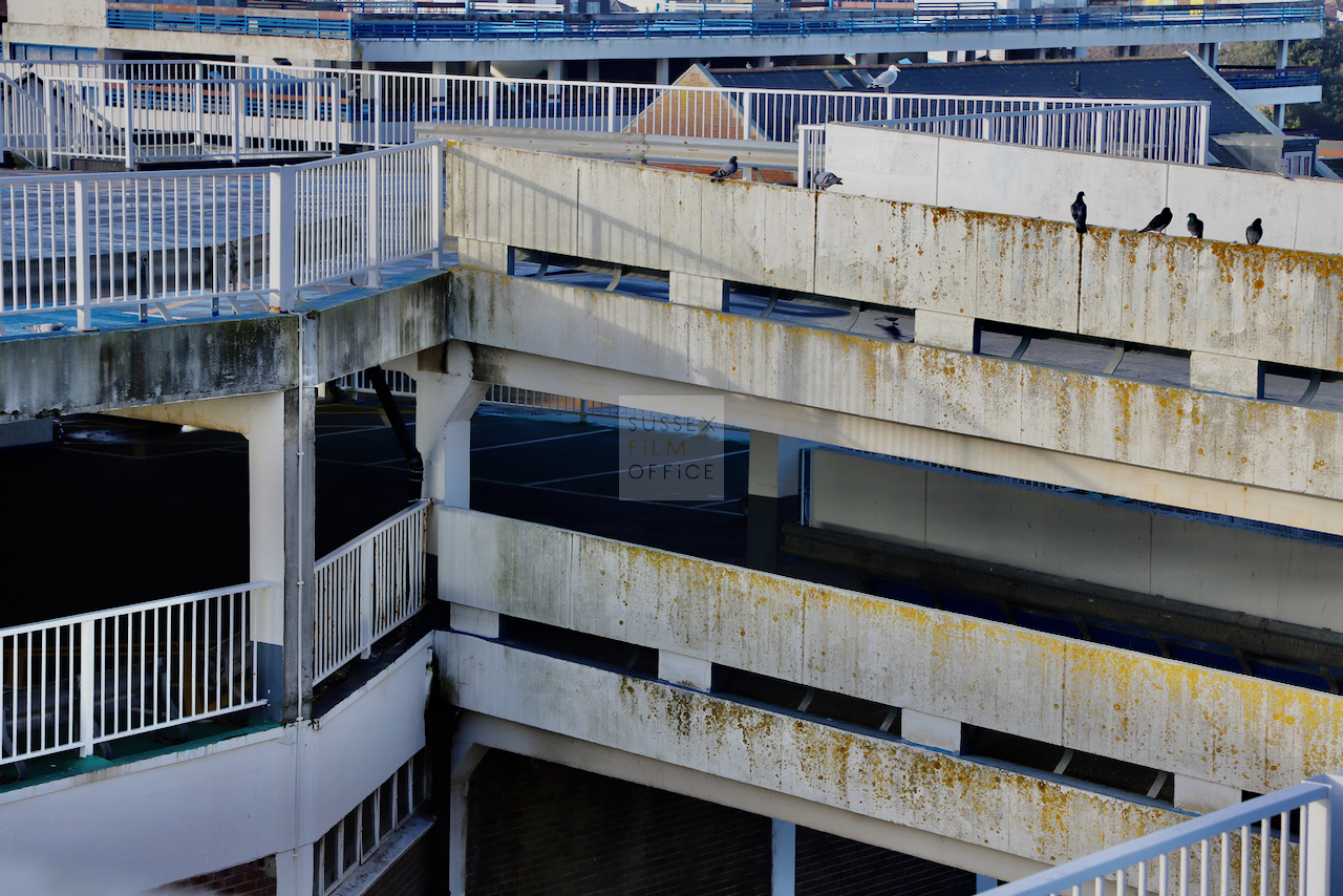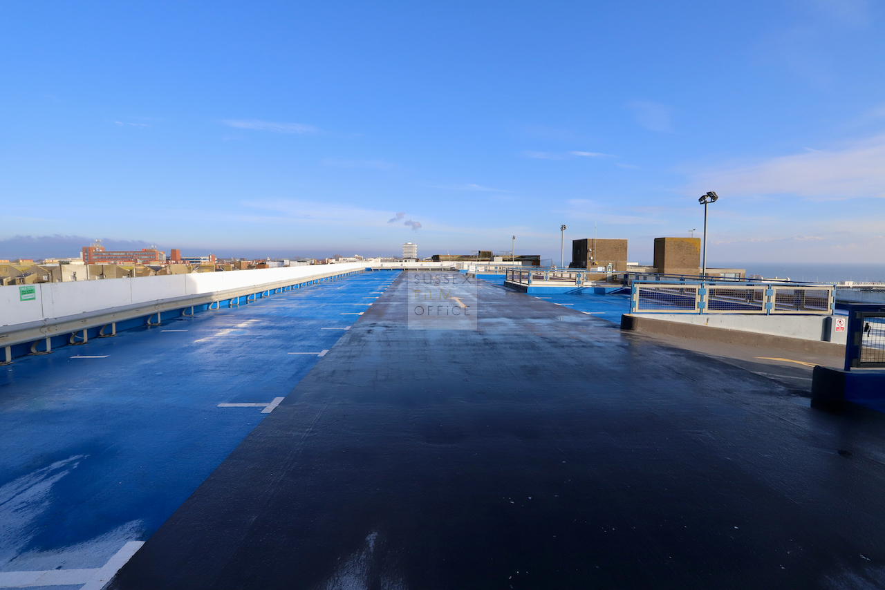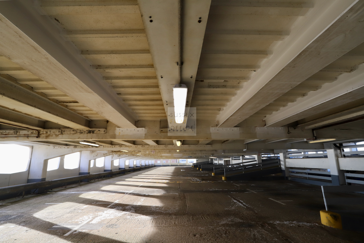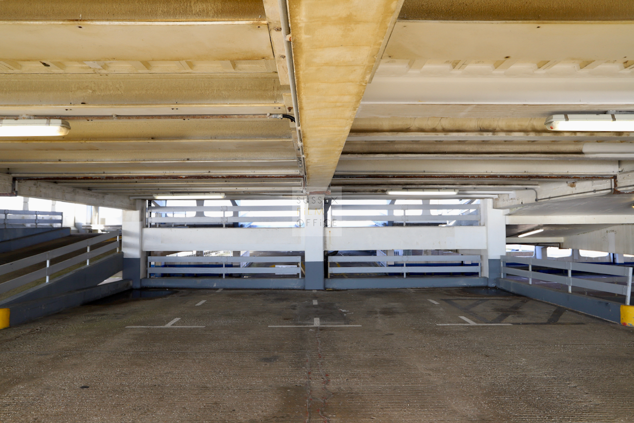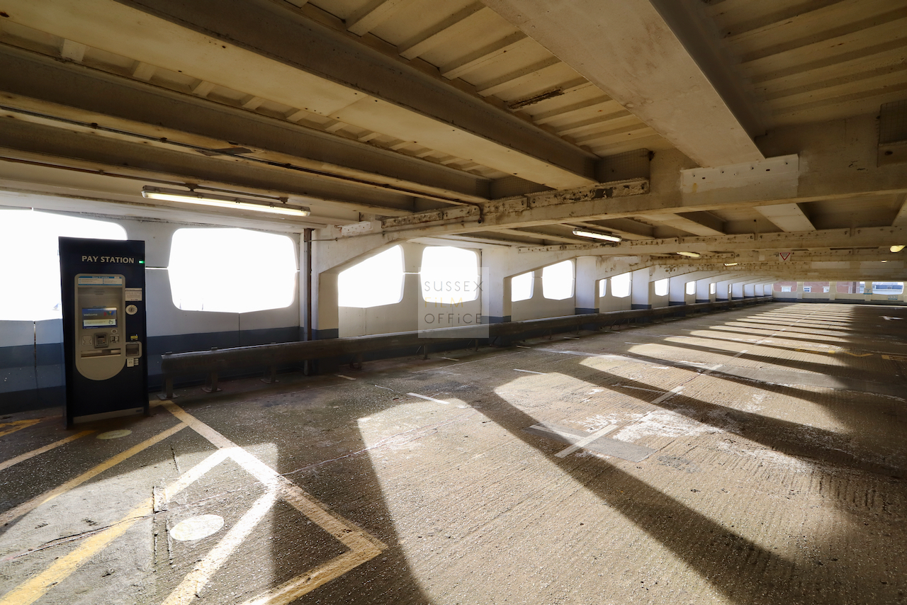 Located adjacent to Worthing seafront, this concrete multi storey car park has an open top floor which enjoys stunning sea views. This imposing and gritty location makes for a great place for urban filming and photography.