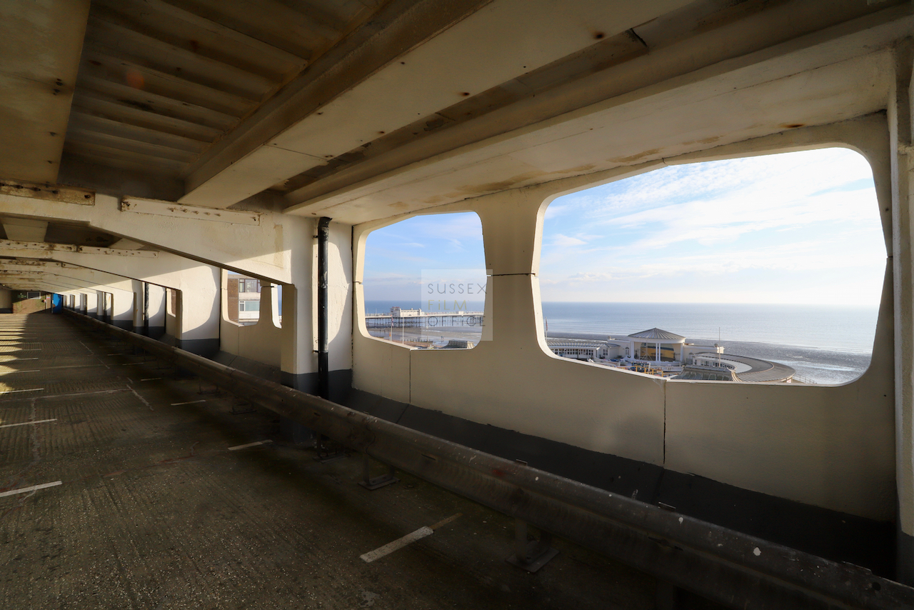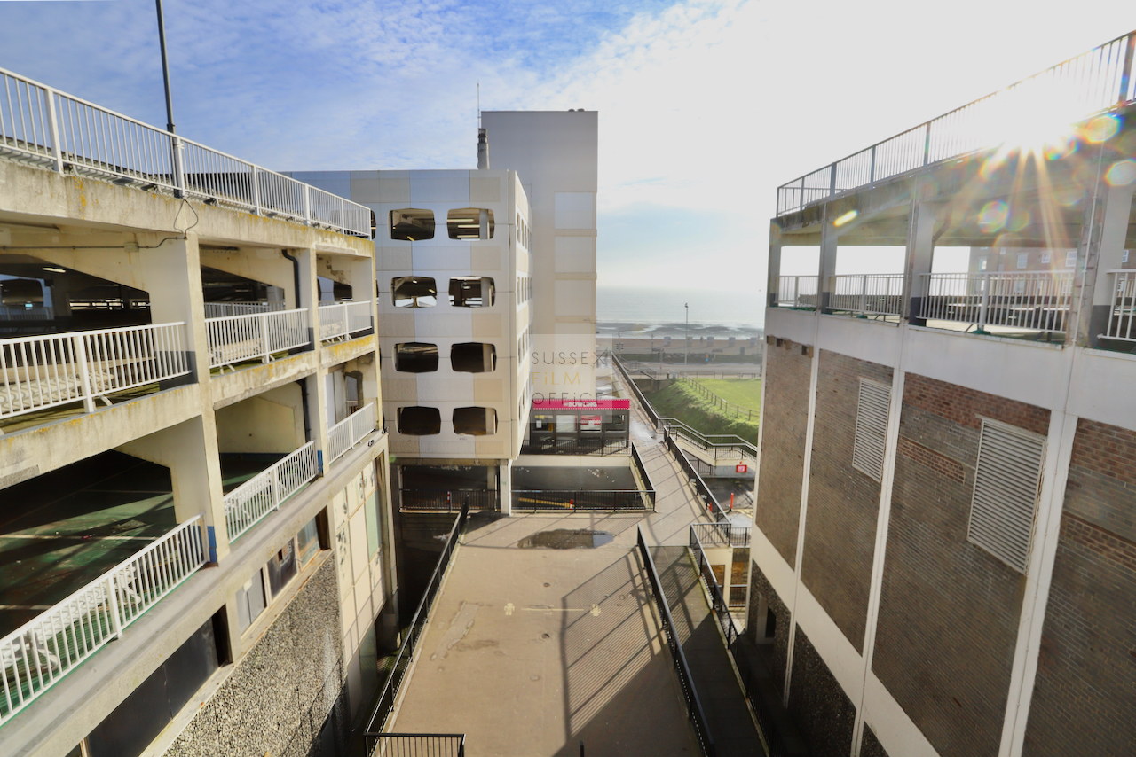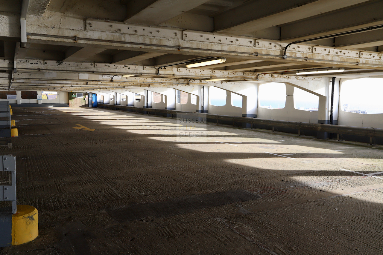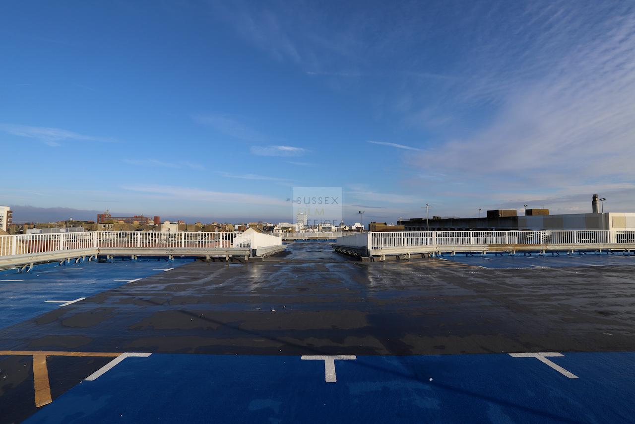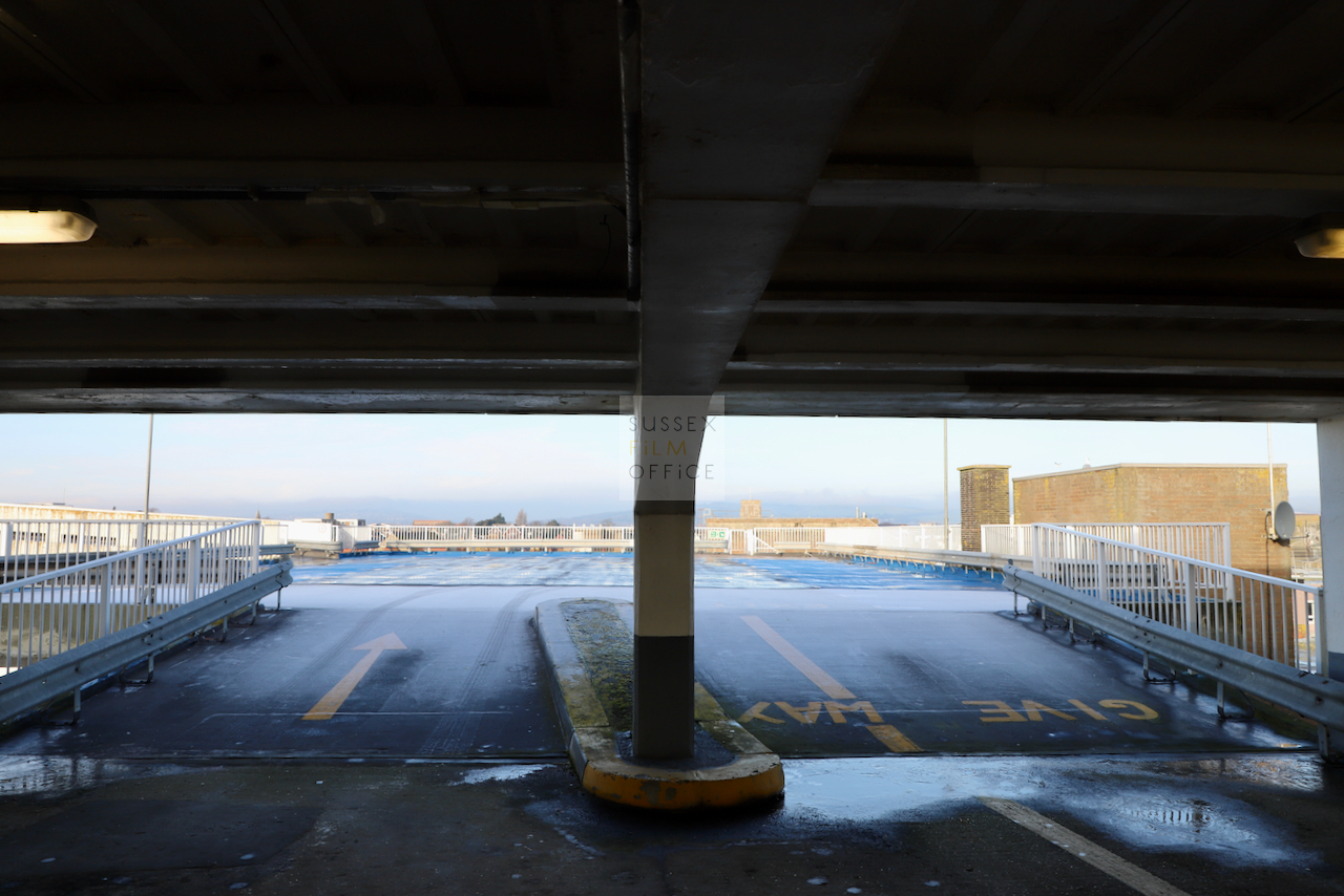 Located adjacent to Worthing seafront, this concrete multi storey car park has an open top floor which enjoys stunning sea views. This imposing and gritty location makes for a great place for urban filming and photography.
