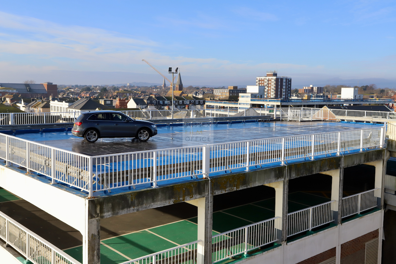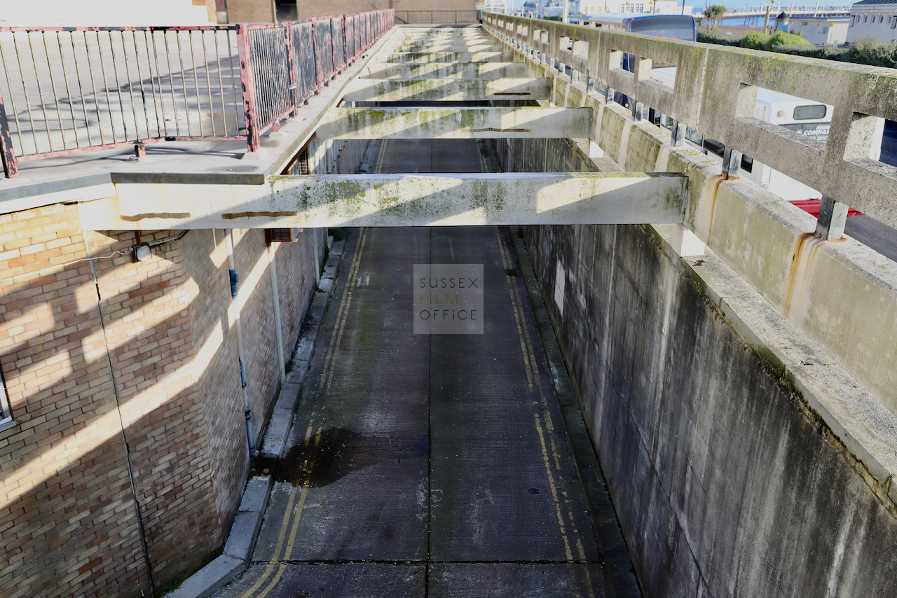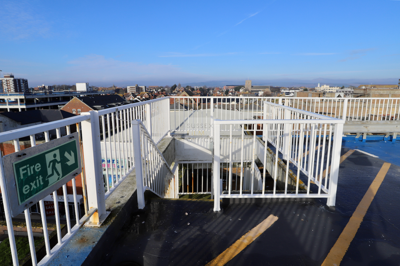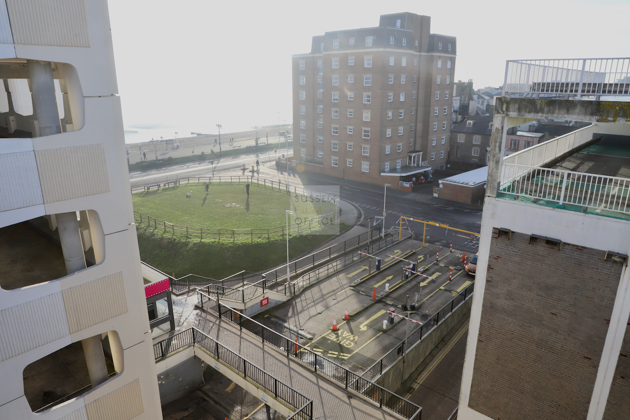 Located adjacent to Worthing seafront, this concrete multi storey car park has an open top floor which enjoys stunning sea views. This imposing and gritty location makes for a great place for urban filming and photography.