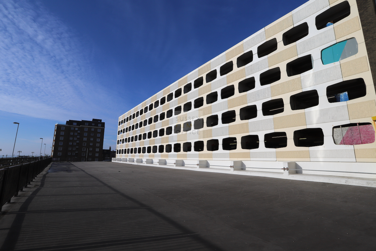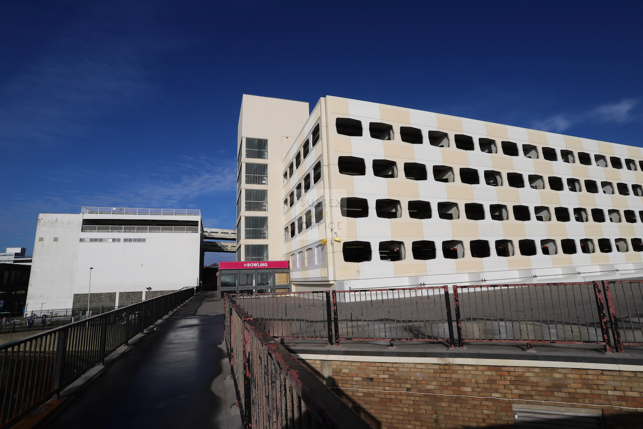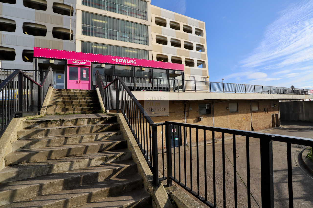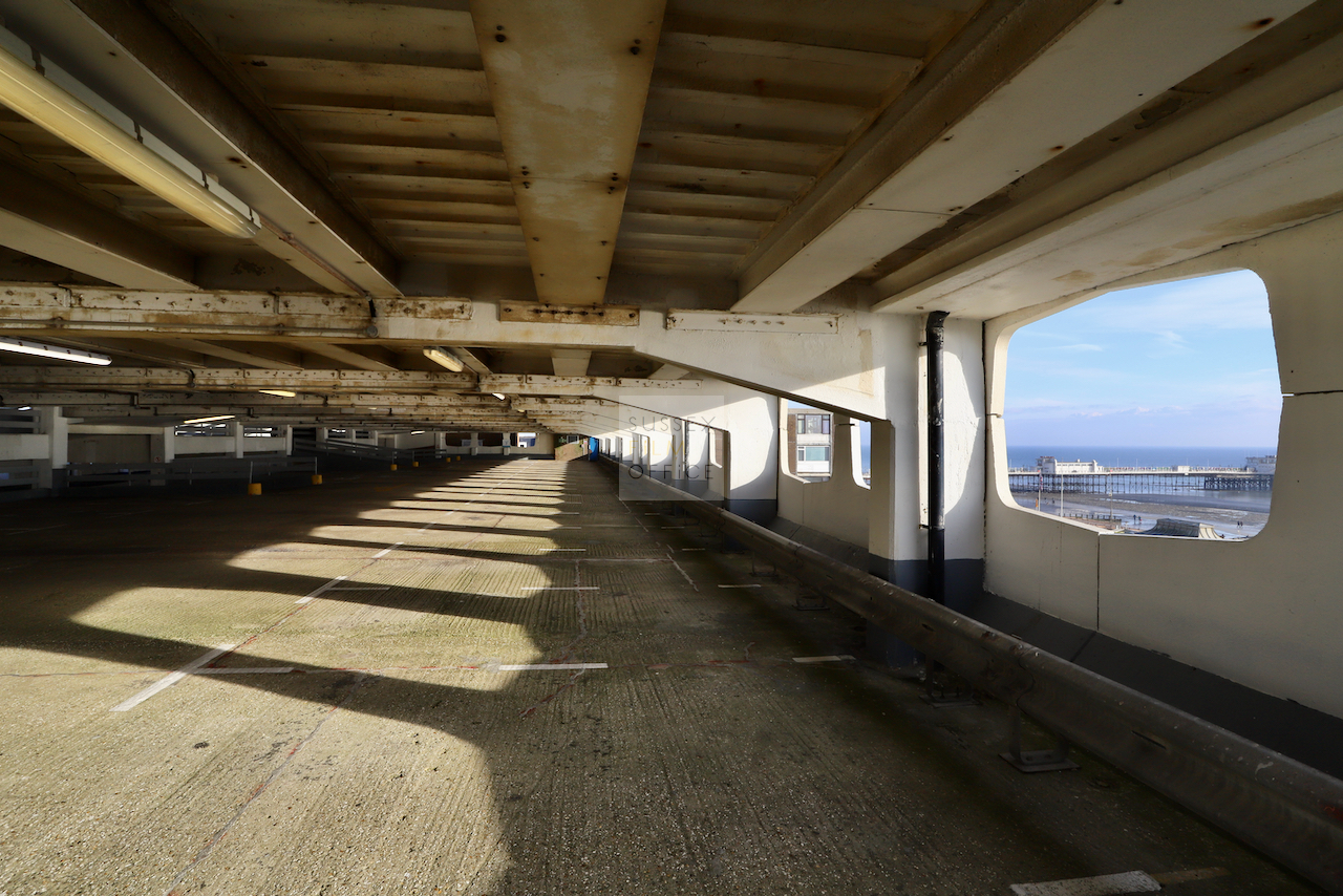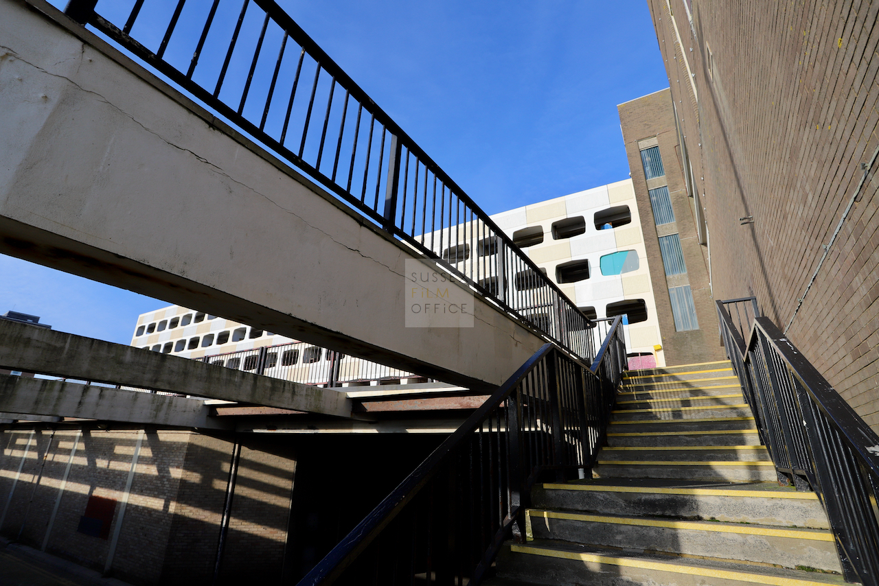 Located adjacent to Worthing seafront, this concrete multi storey car park has an open top floor which enjoys stunning sea views. This imposing and gritty location makes for a great place for urban filming and photography.