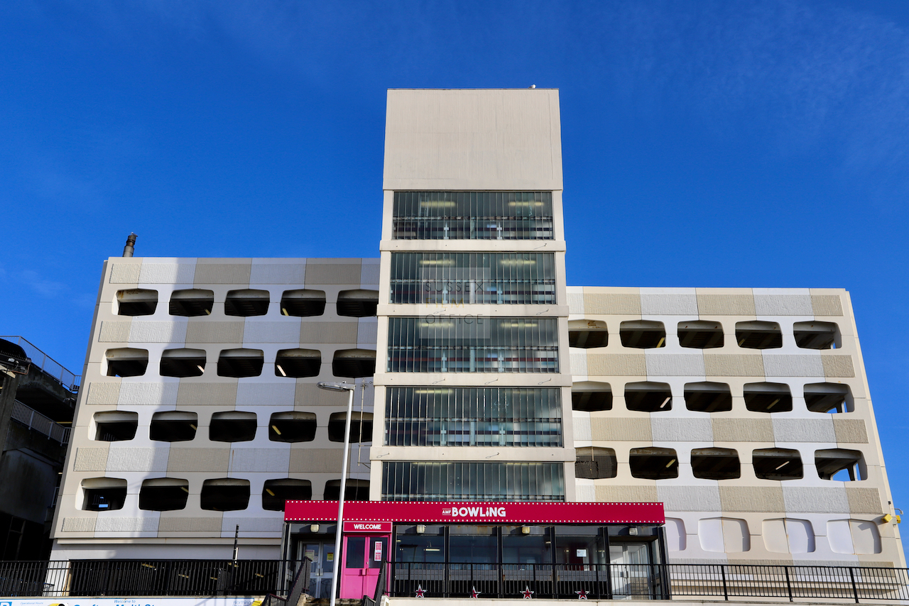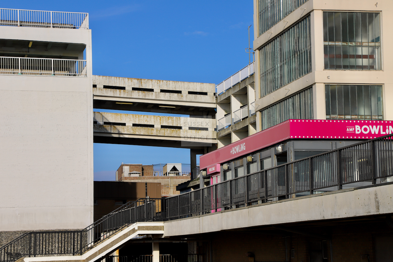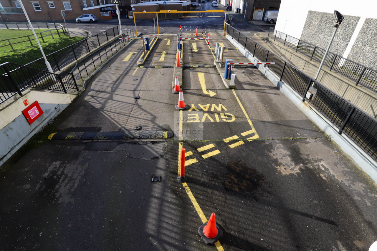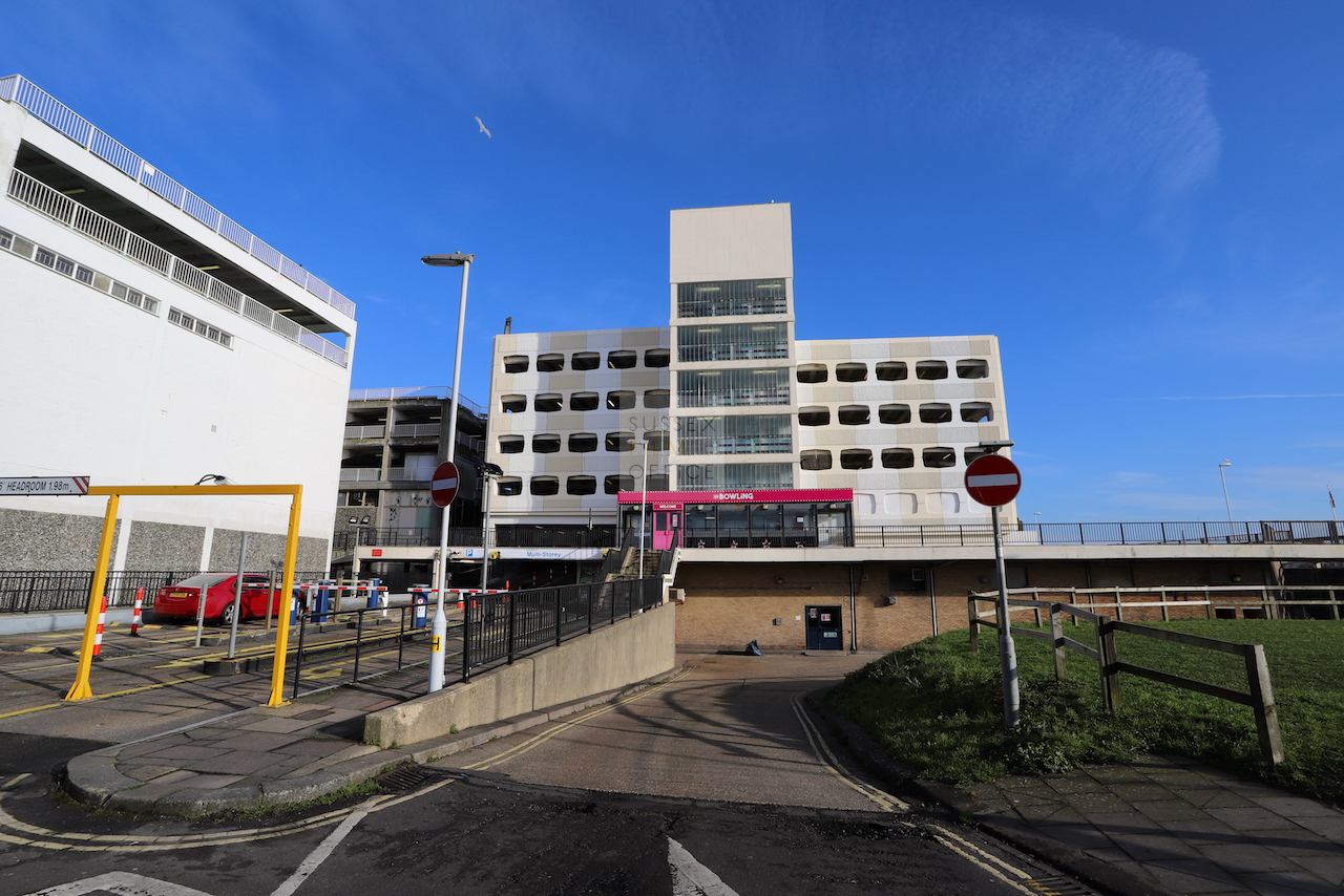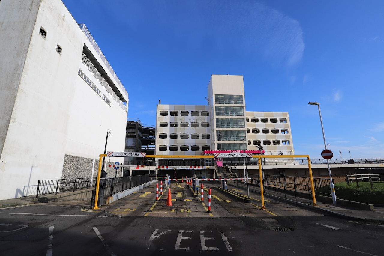 Located adjacent to Worthing seafront, this concrete multi storey car park has an open top floor which enjoys stunning sea views. This imposing and gritty location makes for a great place for urban filming and photography.