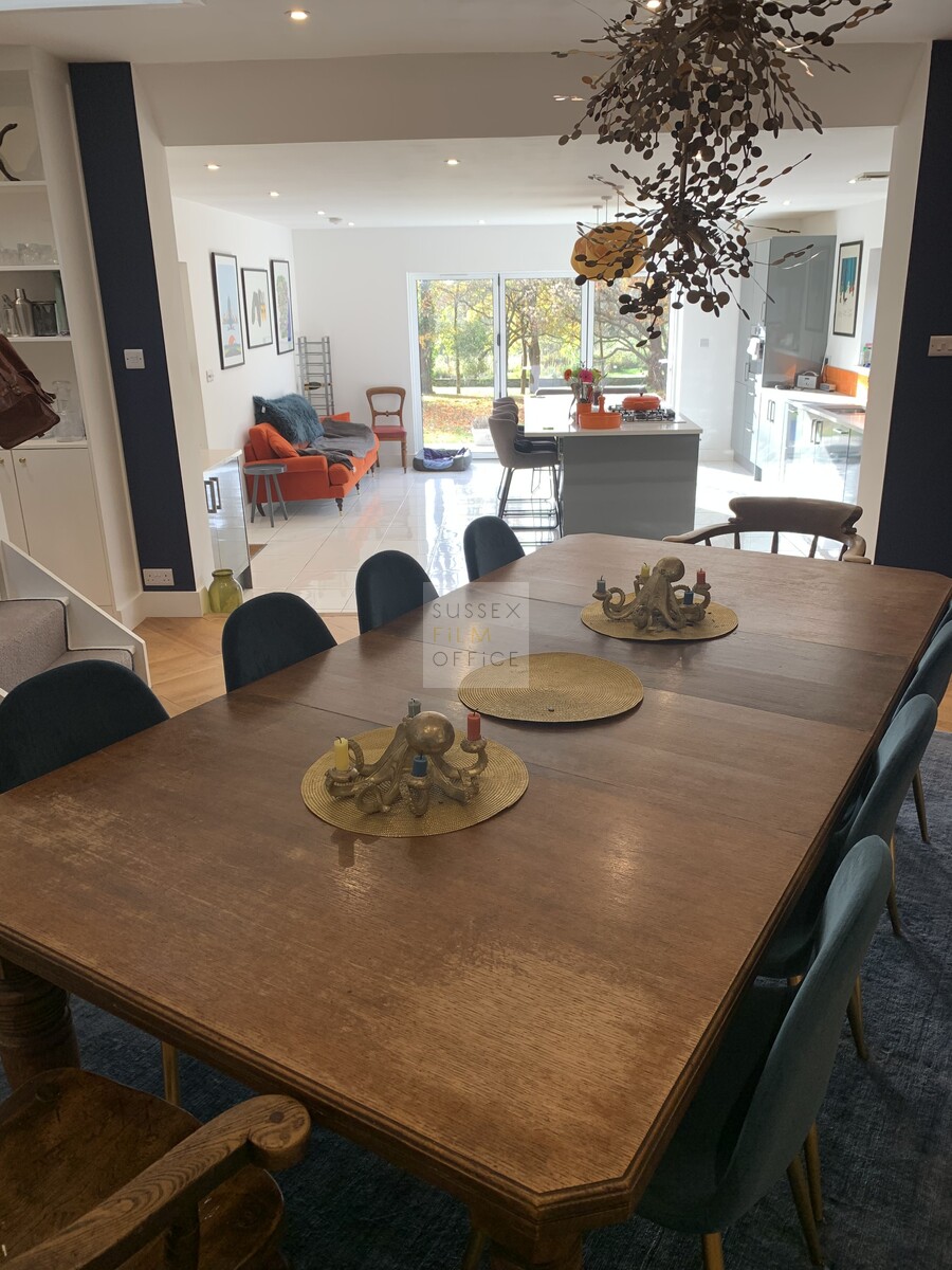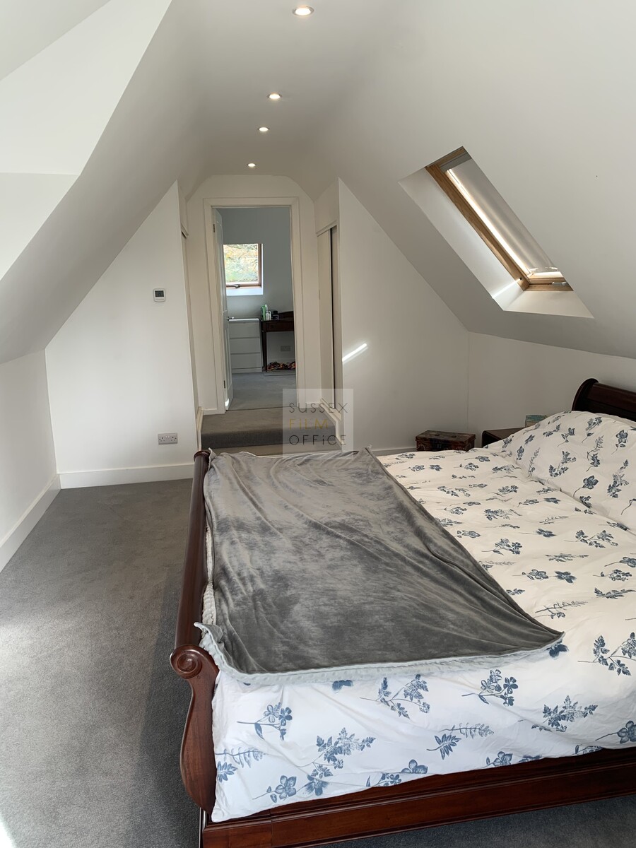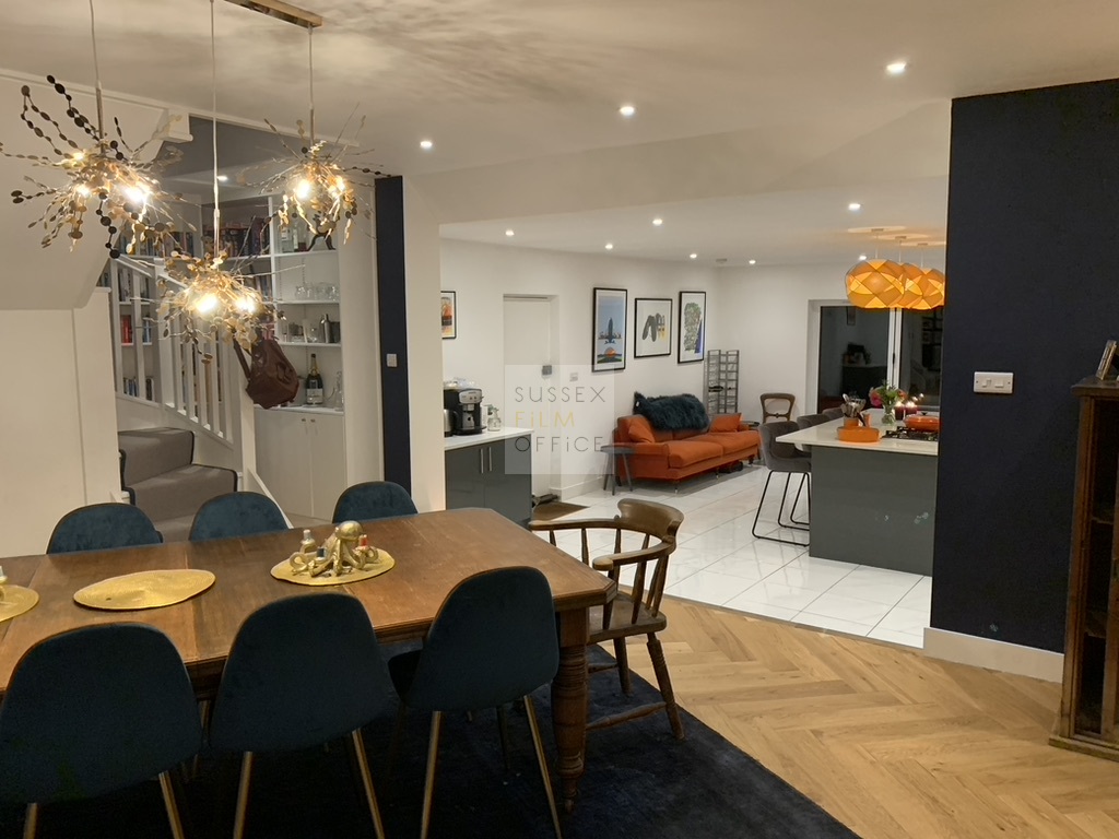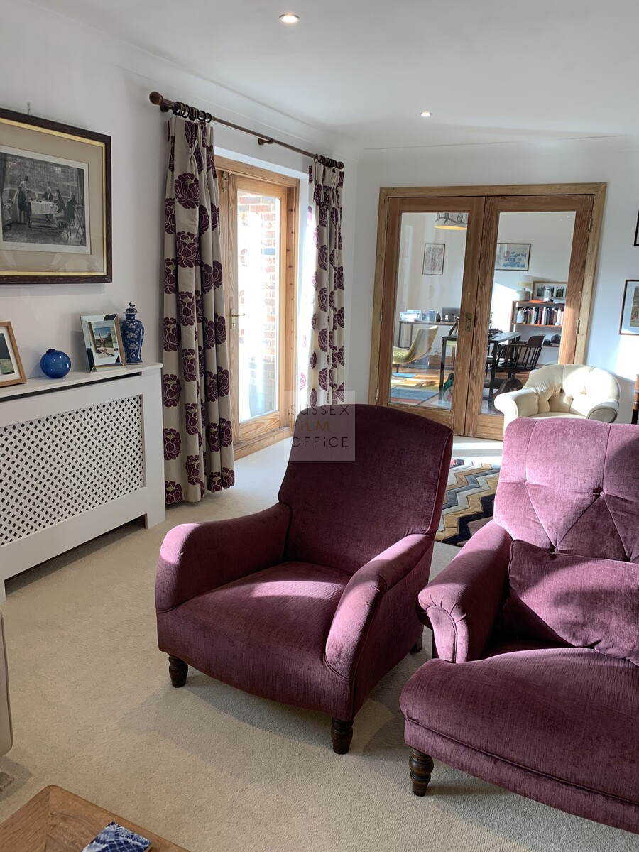 Large and spacious detached house located in an attractive village on the outskirts of a thriving country market town, and a short commute from London. The property comprises lounge, large open plan kitchen and dining room, utility room, 3 bedrooms, family bathroom, 1 ensuite, downstairs cloakroom, and extensive and private rear garden with terrace. Outside there is a table tennis room, garage and plenty of parking for up to 8 vehicles. In addition, there is an annexe (see location 9544) with 1 bedroom, lounge, bathroom, kitchen, its own courtyard garden, and an air raid shelter. A stunning location for filming and photography!