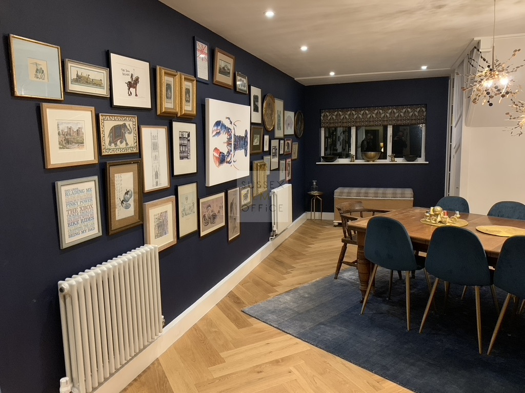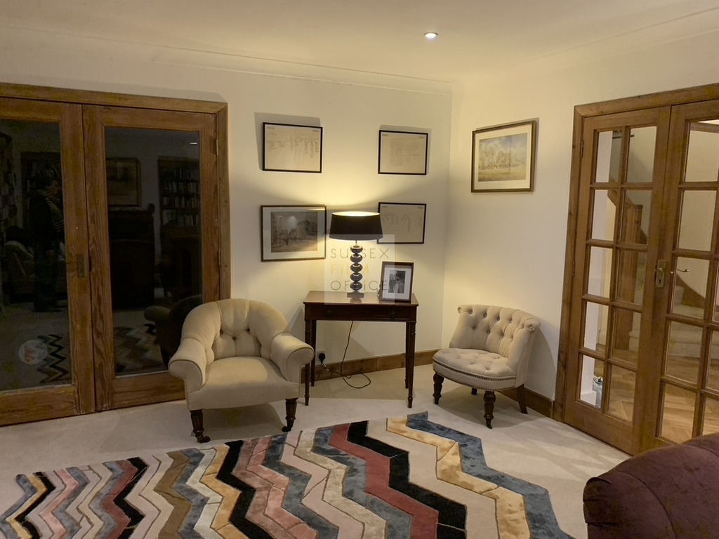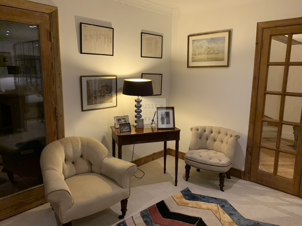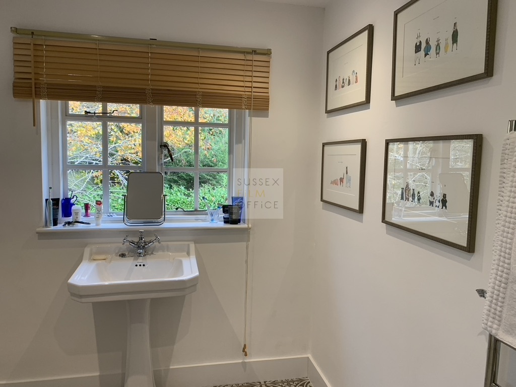 Large and spacious detached house located in an attractive village on the outskirts of a thriving country market town, and a short commute from London. The property comprises lounge, large open plan kitchen and dining room, utility room, 3 bedrooms, family bathroom, 1 ensuite, downstairs cloakroom, and extensive and private rear garden with terrace. Outside there is a table tennis room, garage and plenty of parking for up to 8 vehicles. In addition, there is an annexe (see location 9544) with 1 bedroom, lounge, bathroom, kitchen, its own courtyard garden, and an air raid shelter. A stunning location for filming and photography!
