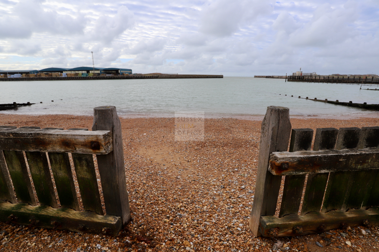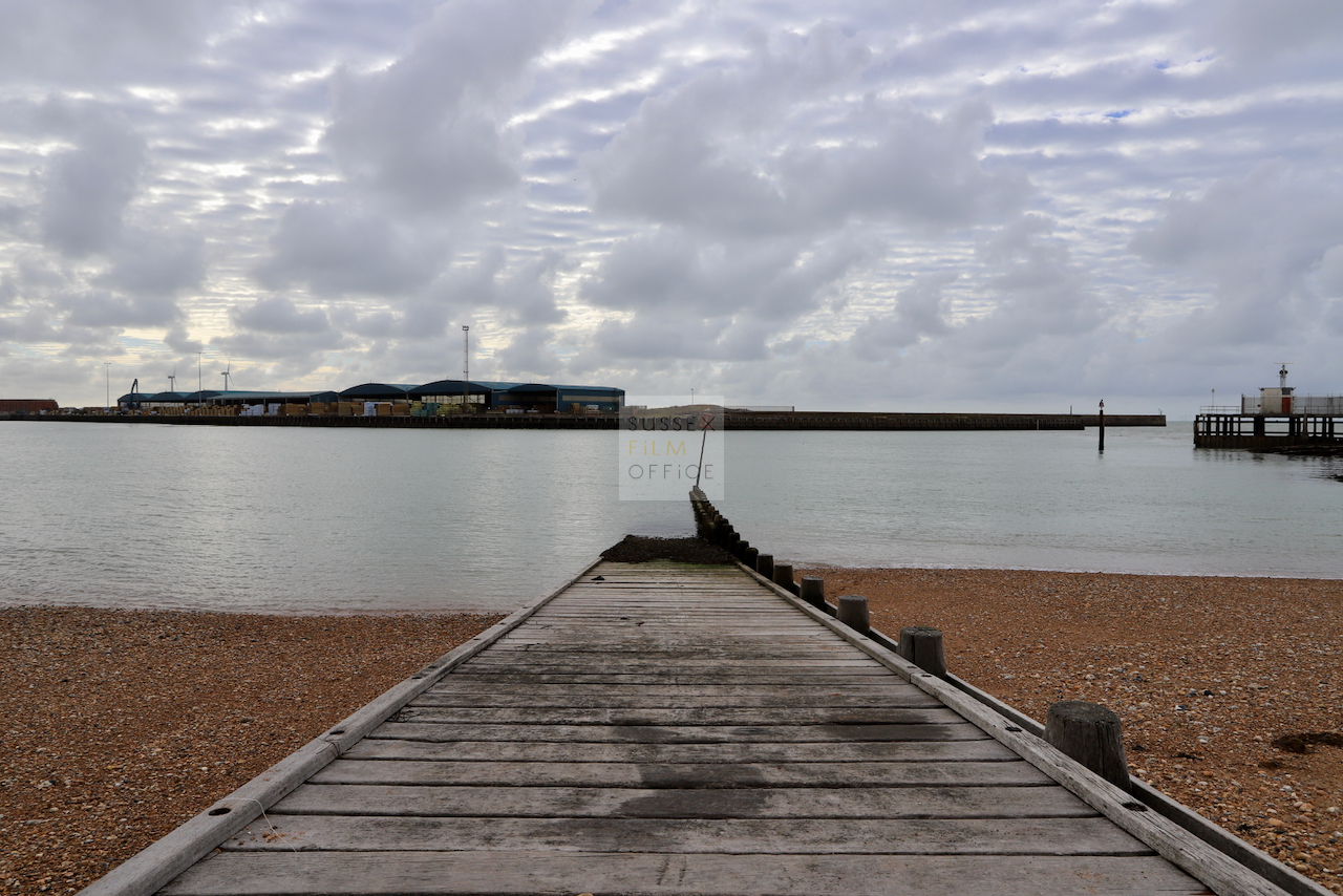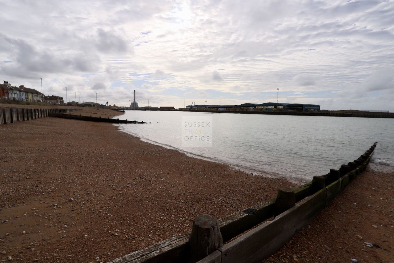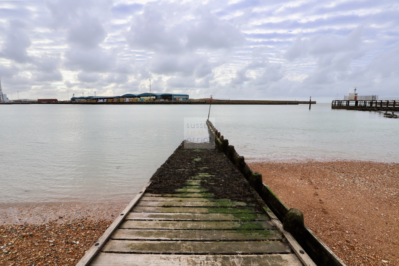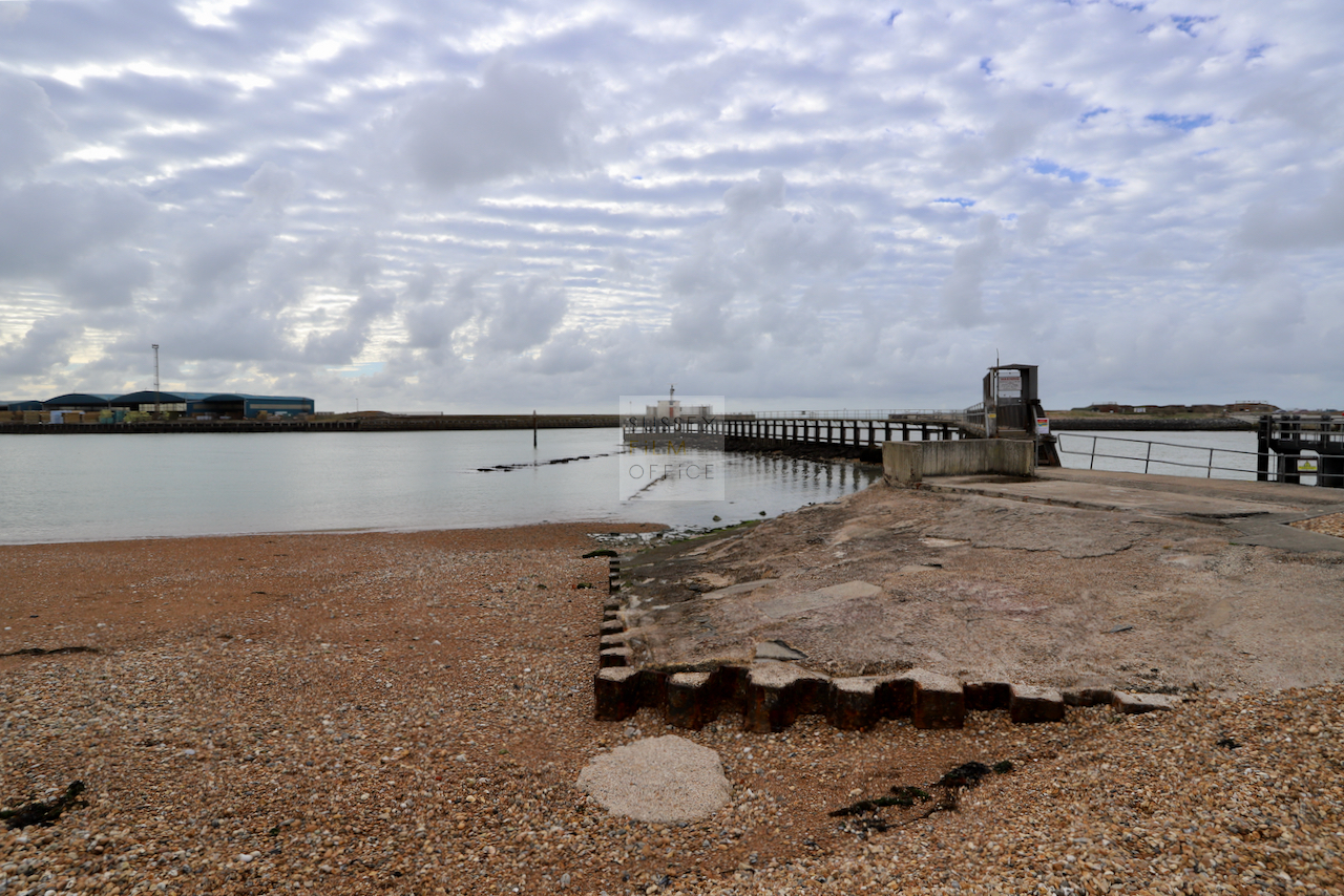 The beach lies within a harbour and is composed of shingle and gravel, with a number of wooden groynes sloping into the sea. At low tide a small area of wet sand and gravel is exposed. Behind the beach is a small area of sand, on which sits a working lighthouse originally built in the mid-19th century, and there is a lifeboat station is adjacent to the beach. The harbour is used by a mix of commercial and leisure vessels. At the entrance to the harbour, across from the beach are the remains of a Redoubt. An interesting location for filmmakers.