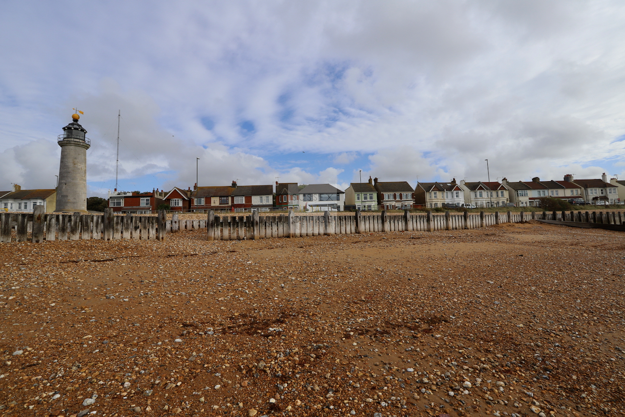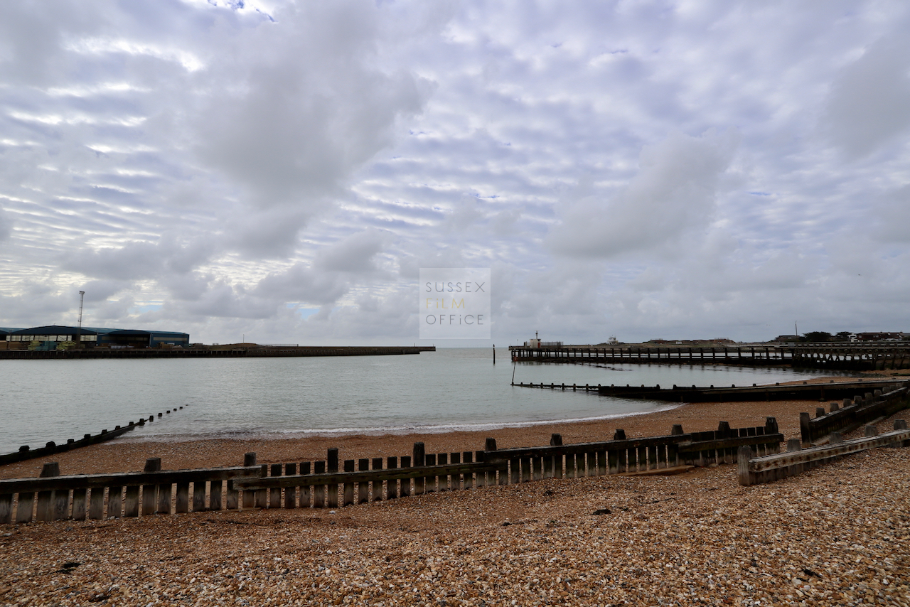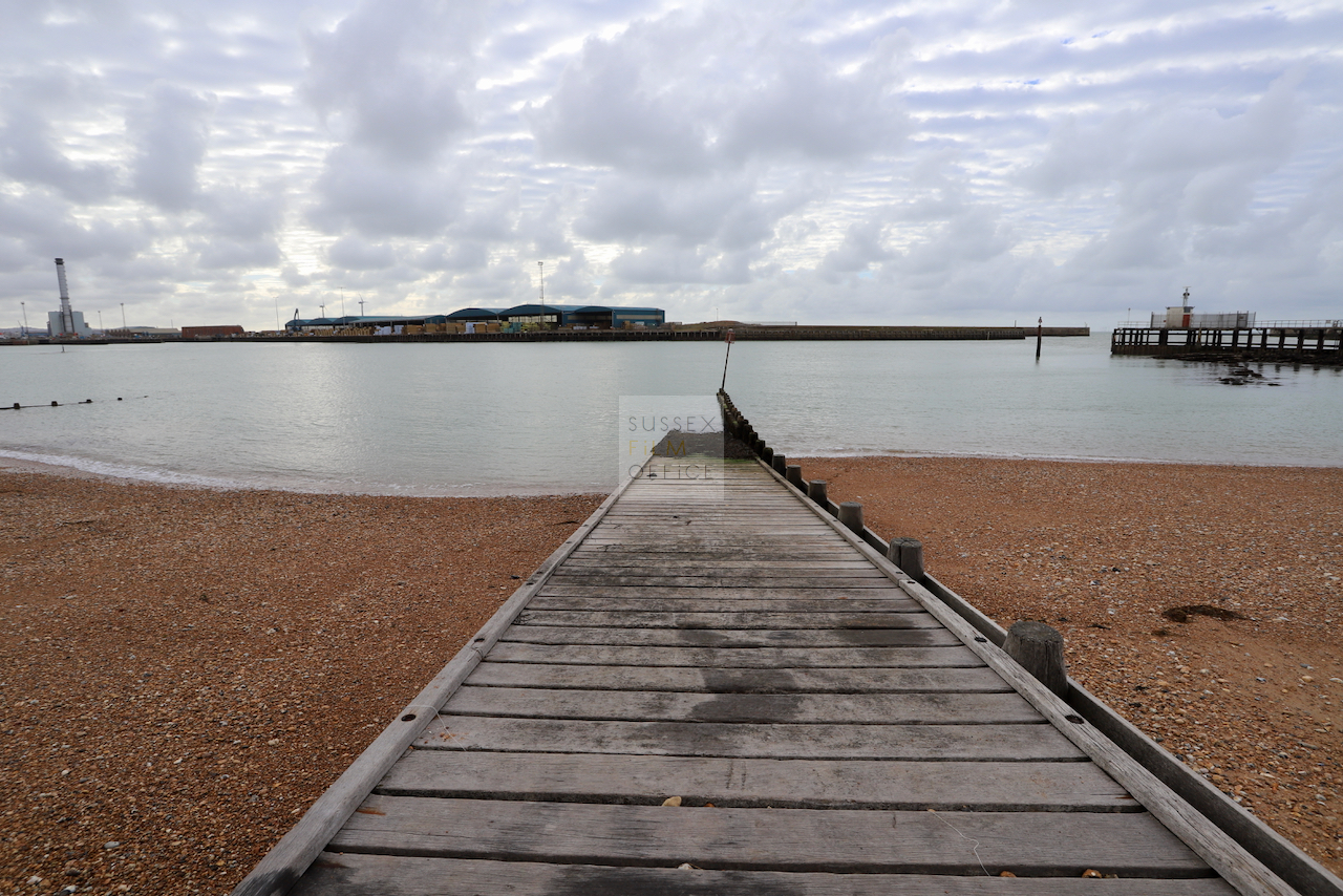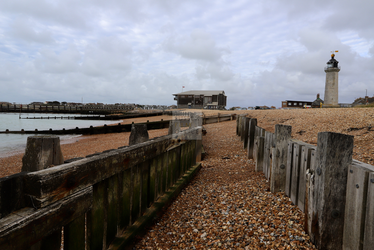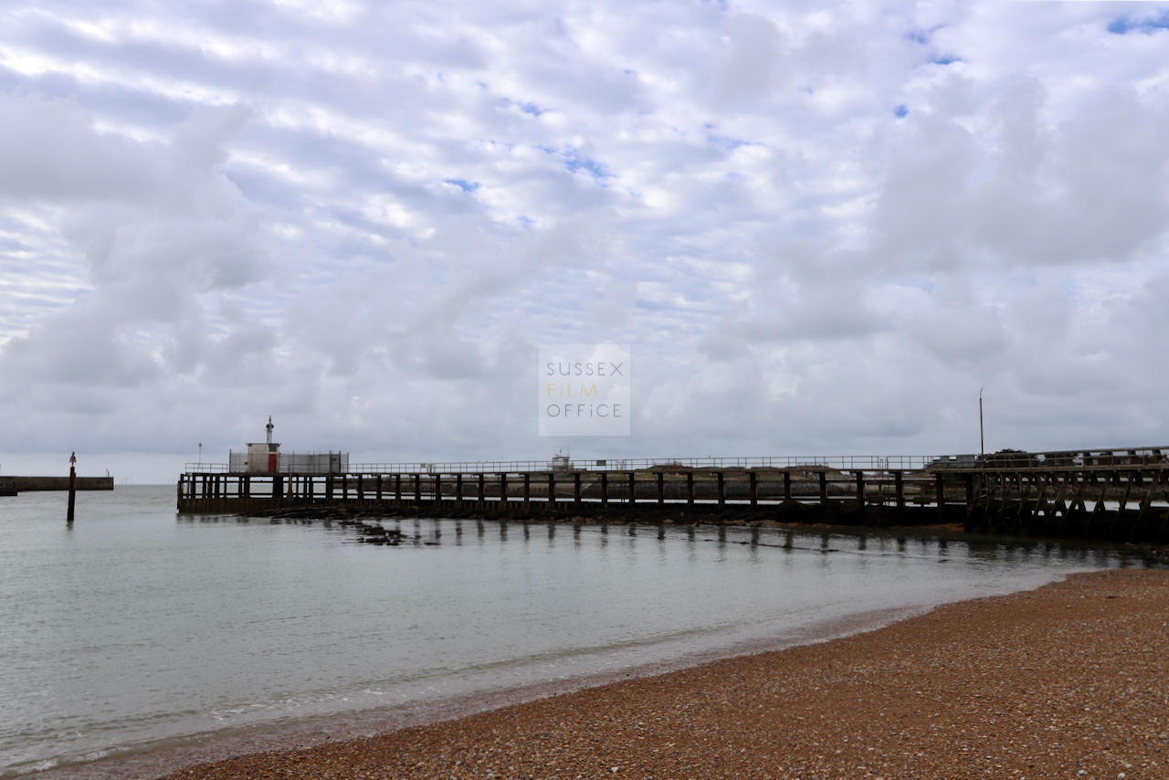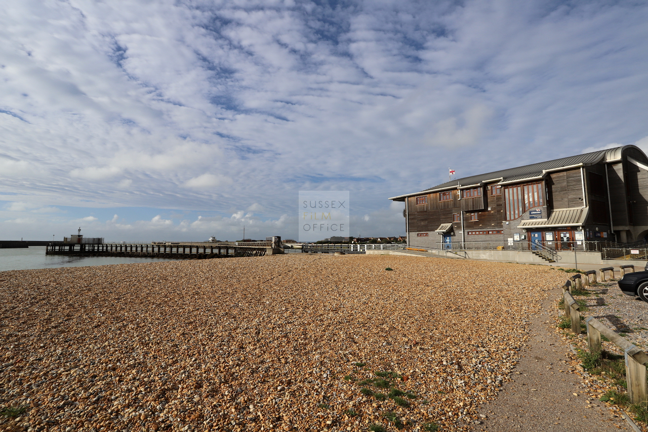 The beach lies within a harbour and is composed of shingle and gravel, with a number of wooden groynes sloping into the sea. At low tide a small area of wet sand and gravel is exposed. Behind the beach is a small area of sand, on which sits a working lighthouse originally built in the mid-19th century, and there is a lifeboat station is adjacent to the beach. The harbour is used by a mix of commercial and leisure vessels. At the entrance to the harbour, across from the beach are the remains of a Redoubt. An interesting location for filmmakers.