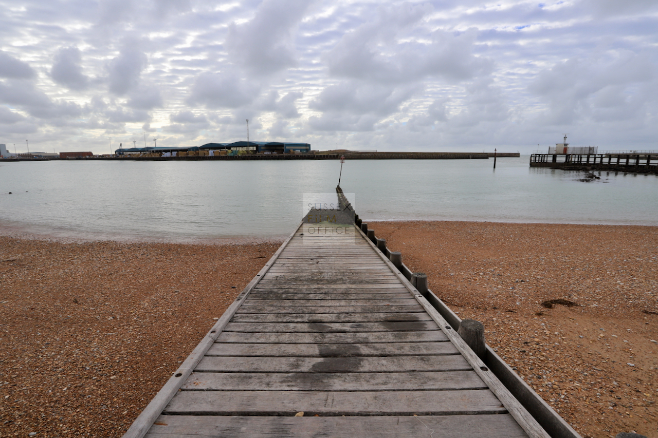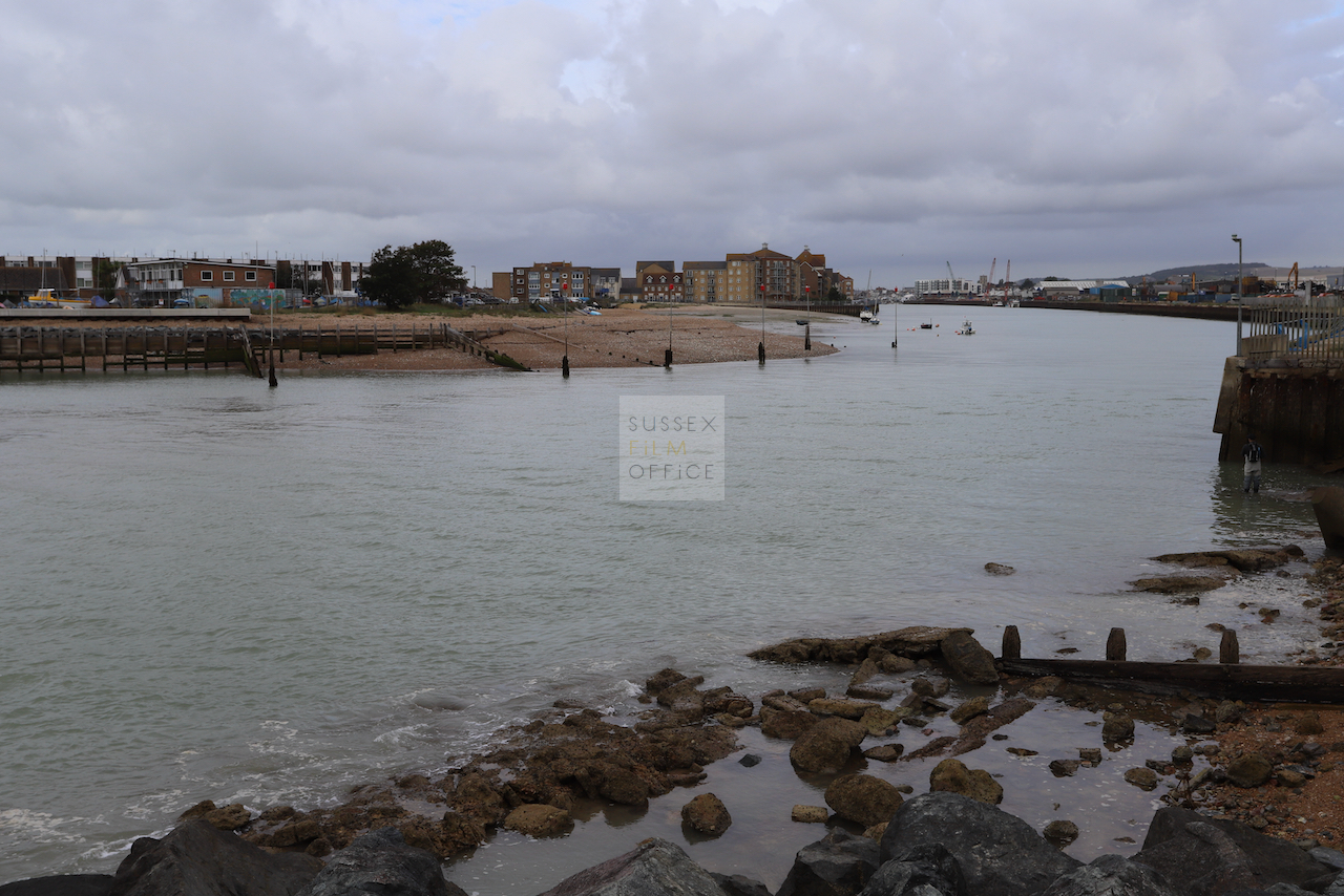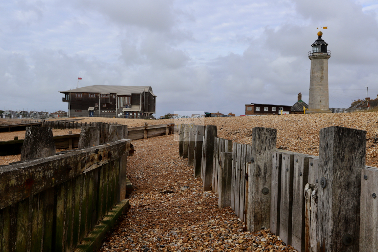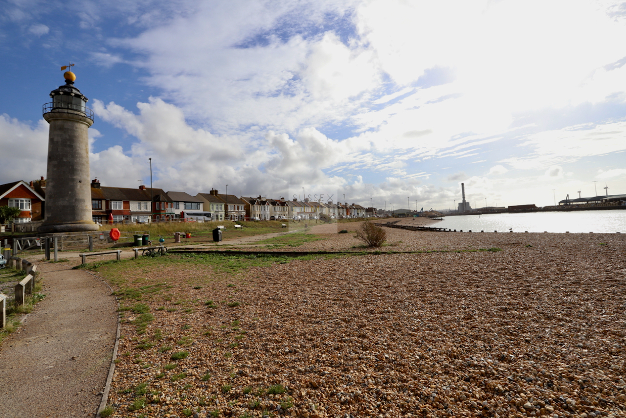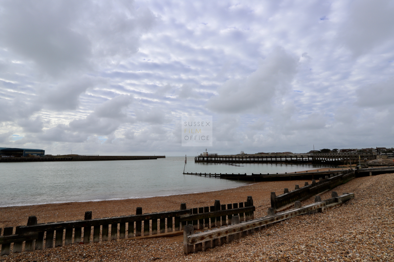 The beach lies within a harbour and is composed of shingle and gravel, with a number of wooden groynes sloping into the sea. At low tide a small area of wet sand and gravel is exposed. Behind the beach is a small area of sand, on which sits a working lighthouse originally built in the mid-19th century, and there is a lifeboat station is adjacent to the beach. The harbour is used by a mix of commercial and leisure vessels. At the entrance to the harbour, across from the beach are the remains of a Redoubt. An interesting location for filmmakers.