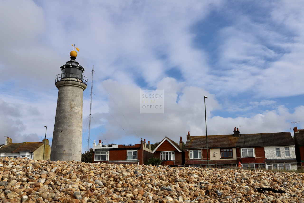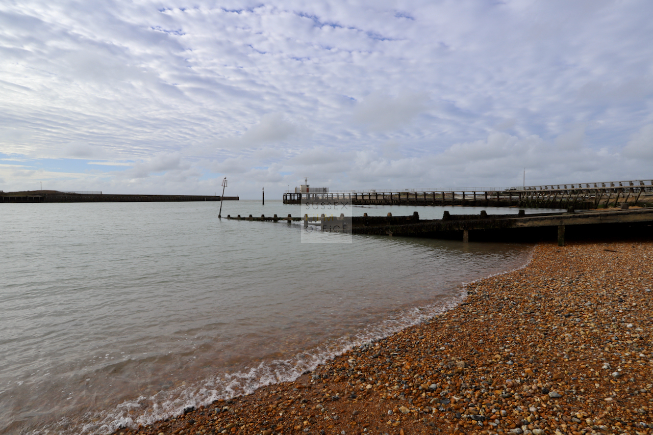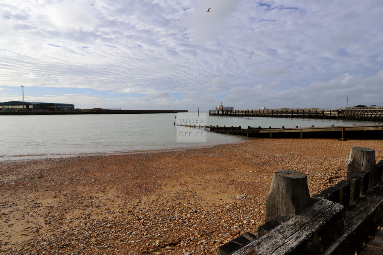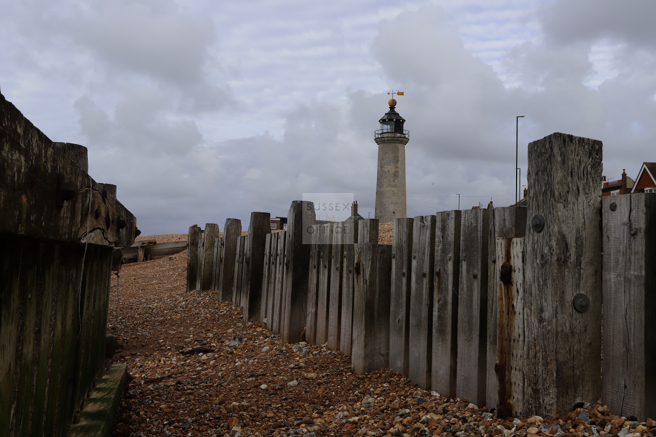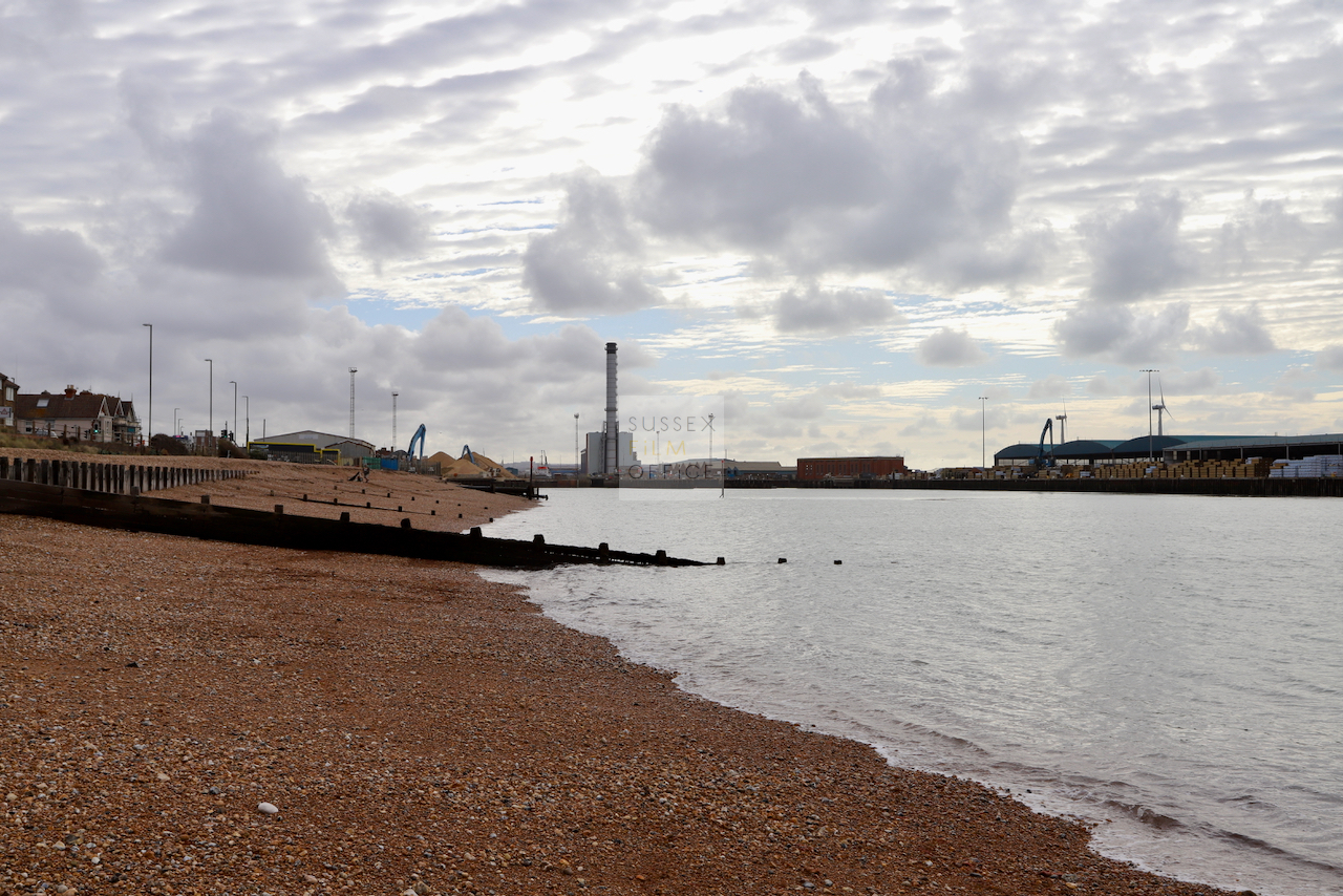 The beach lies within a harbour and is composed of shingle and gravel, with a number of wooden groynes sloping into the sea. At low tide a small area of wet sand and gravel is exposed. Behind the beach is a small area of sand, on which sits a working lighthouse originally built in the mid-19th century, and there is a lifeboat station is adjacent to the beach. The harbour is used by a mix of commercial and leisure vessels. At the entrance to the harbour, across from the beach are the remains of a Redoubt. An interesting location for filmmakers.