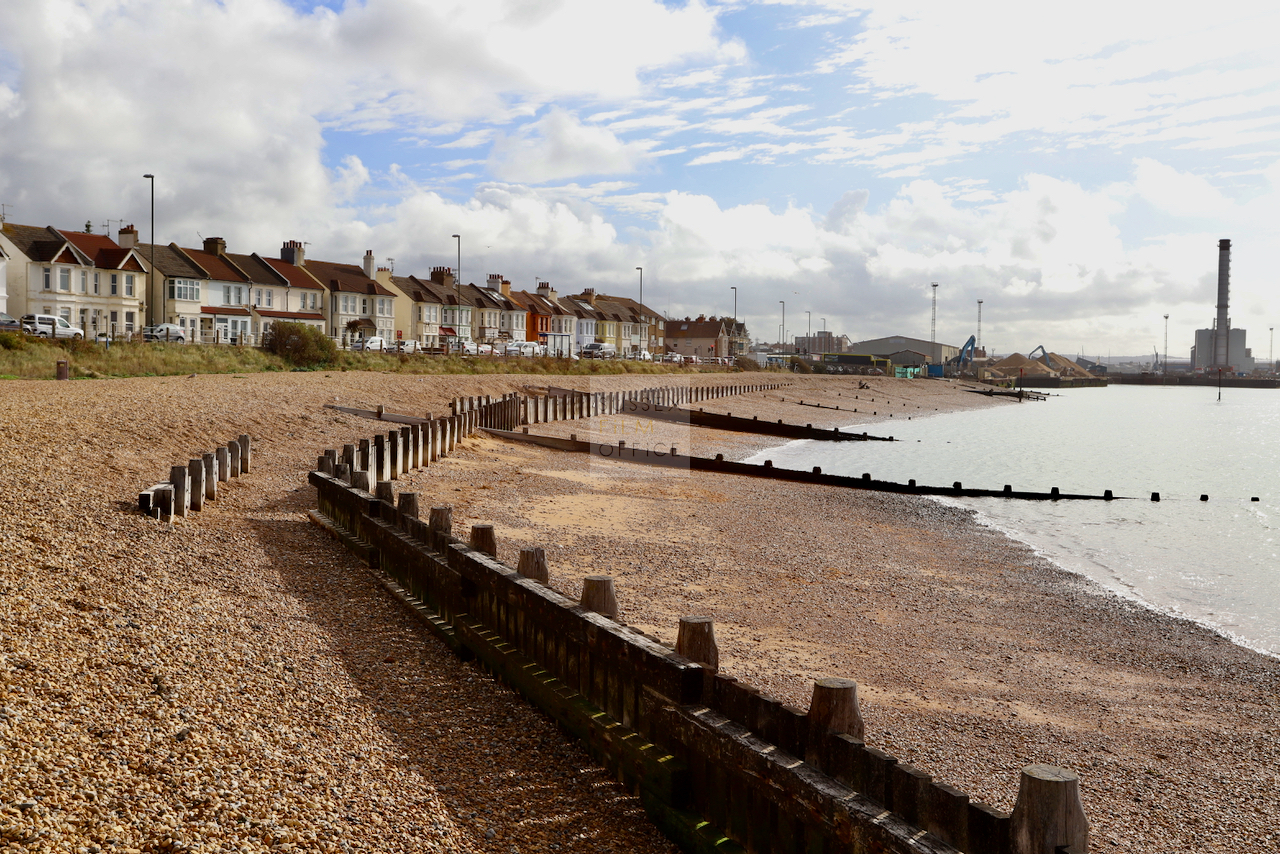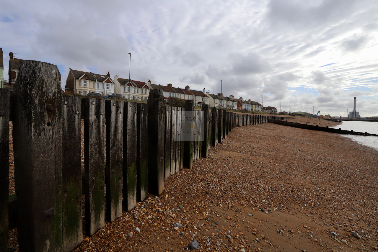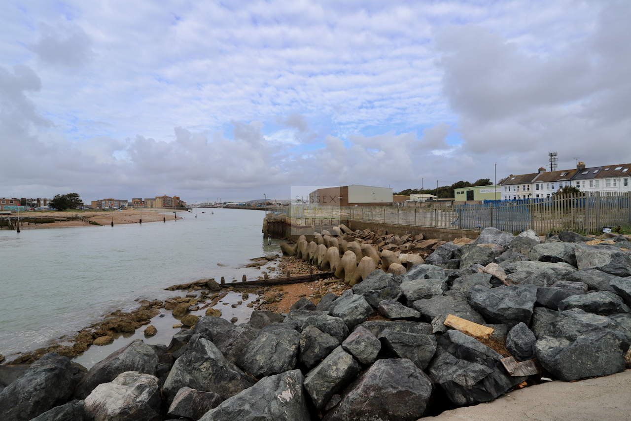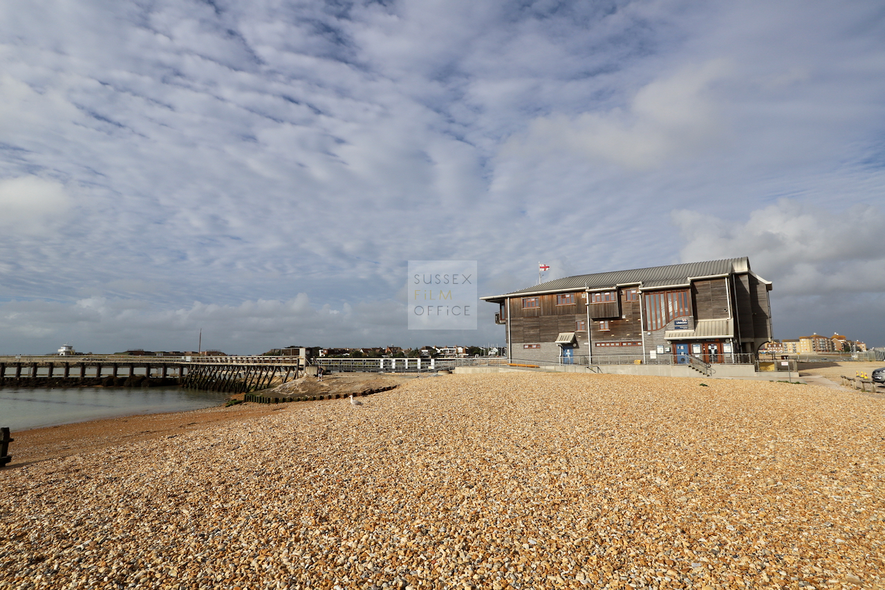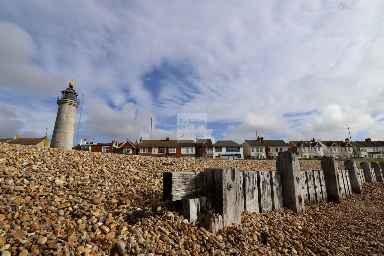 The beach lies within a harbour and is composed of shingle and gravel, with a number of wooden groynes sloping into the sea. At low tide a small area of wet sand and gravel is exposed. Behind the beach is a small area of sand, on which sits a working lighthouse originally built in the mid-19th century, and there is a lifeboat station is adjacent to the beach. The harbour is used by a mix of commercial and leisure vessels. At the entrance to the harbour, across from the beach are the remains of a Redoubt. An interesting location for filmmakers.