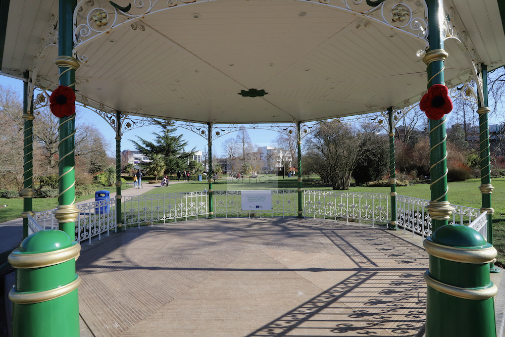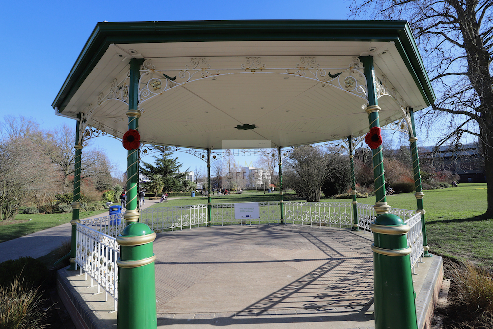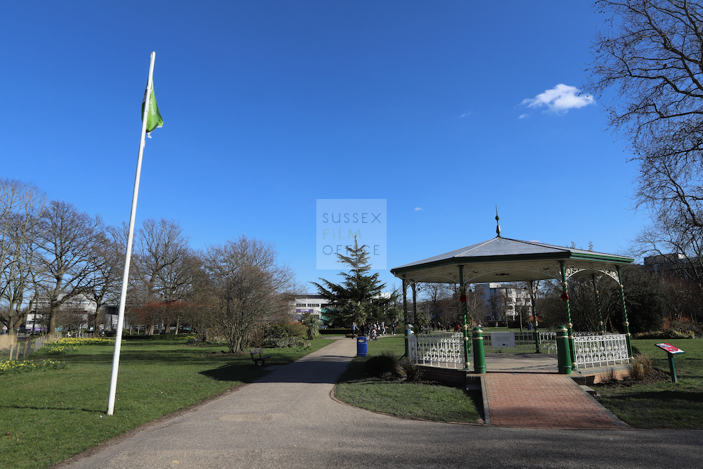 The gardens have a selection of mature trees, shrubs and flowers with a Victorian bandstand, unsupervised play area and a large circular flowerbed. This is a picturesque location for filming.