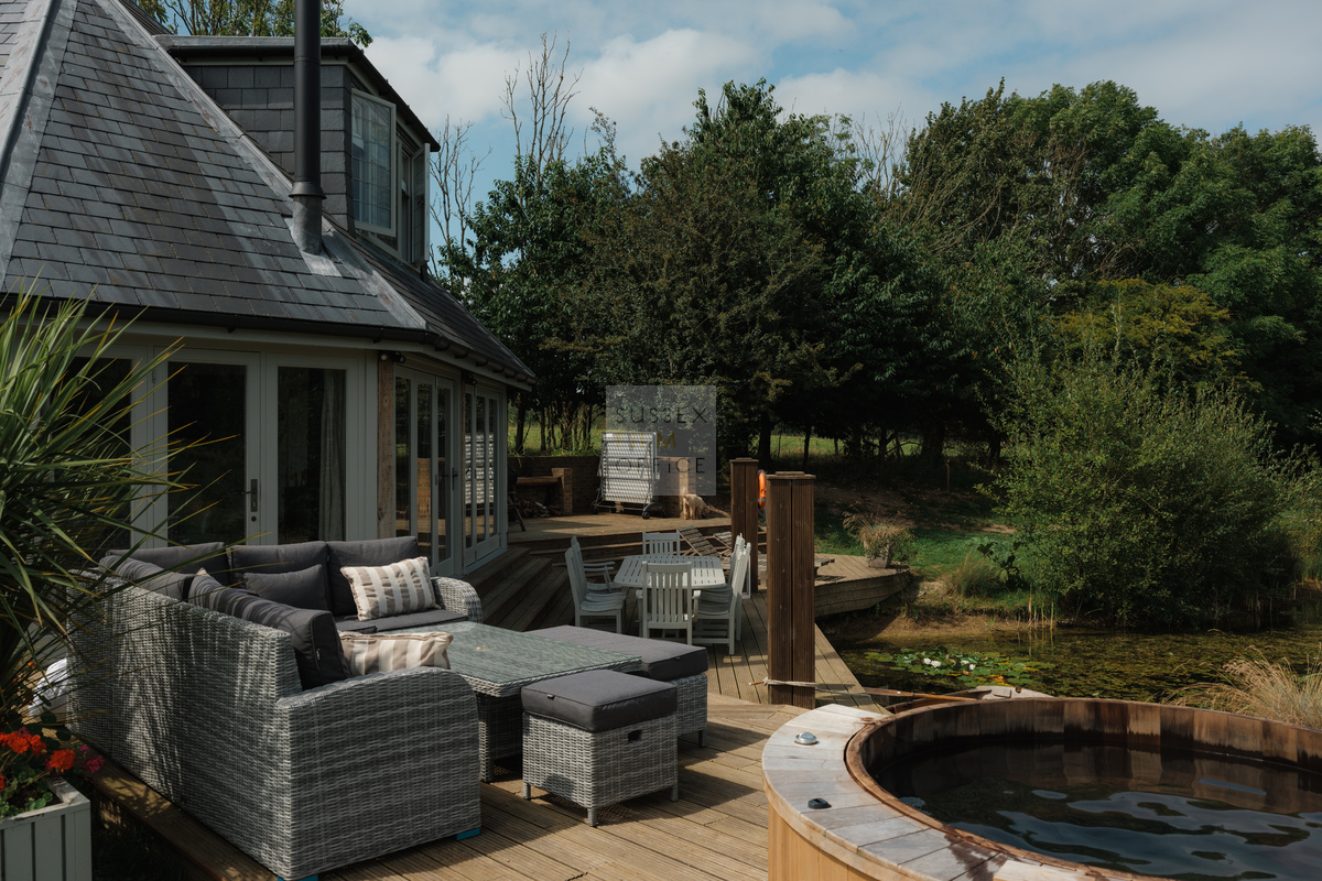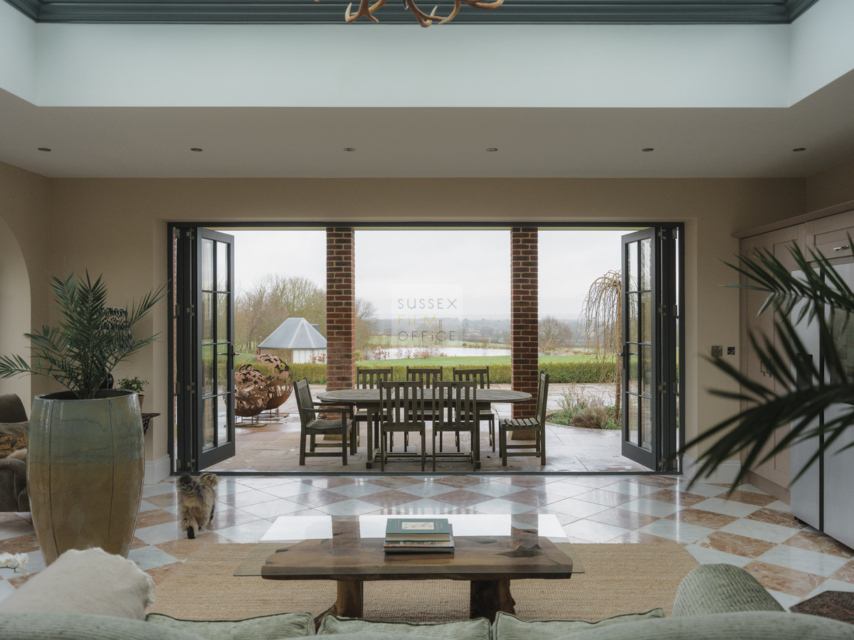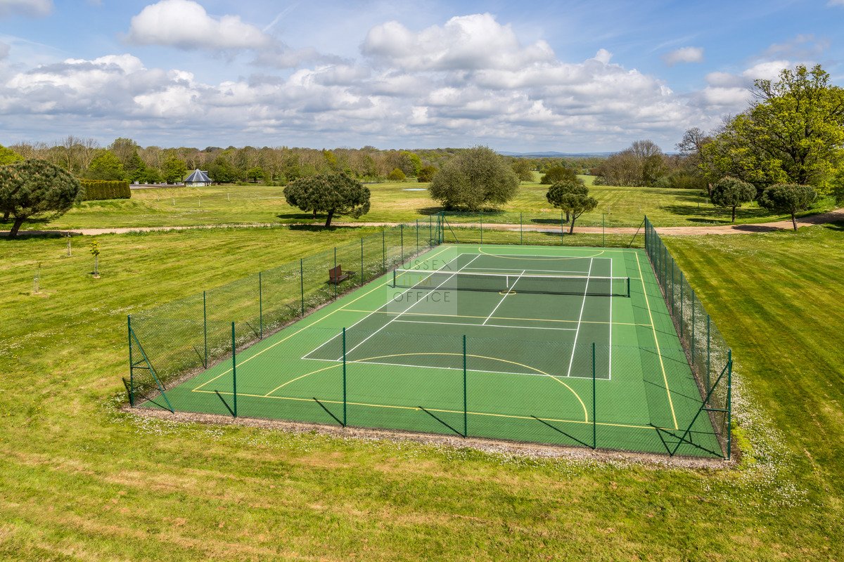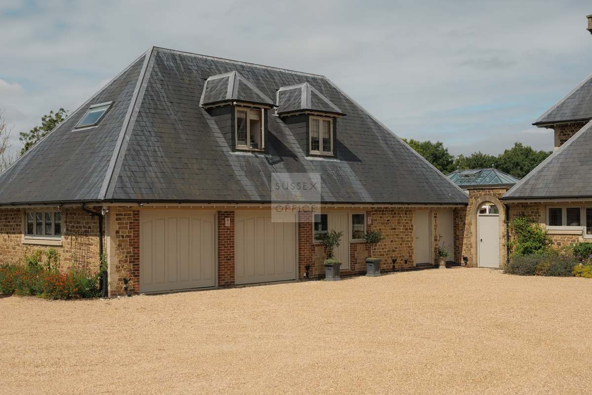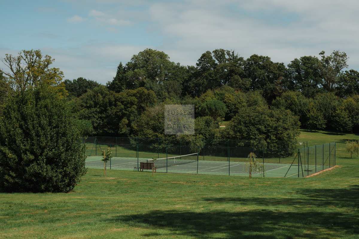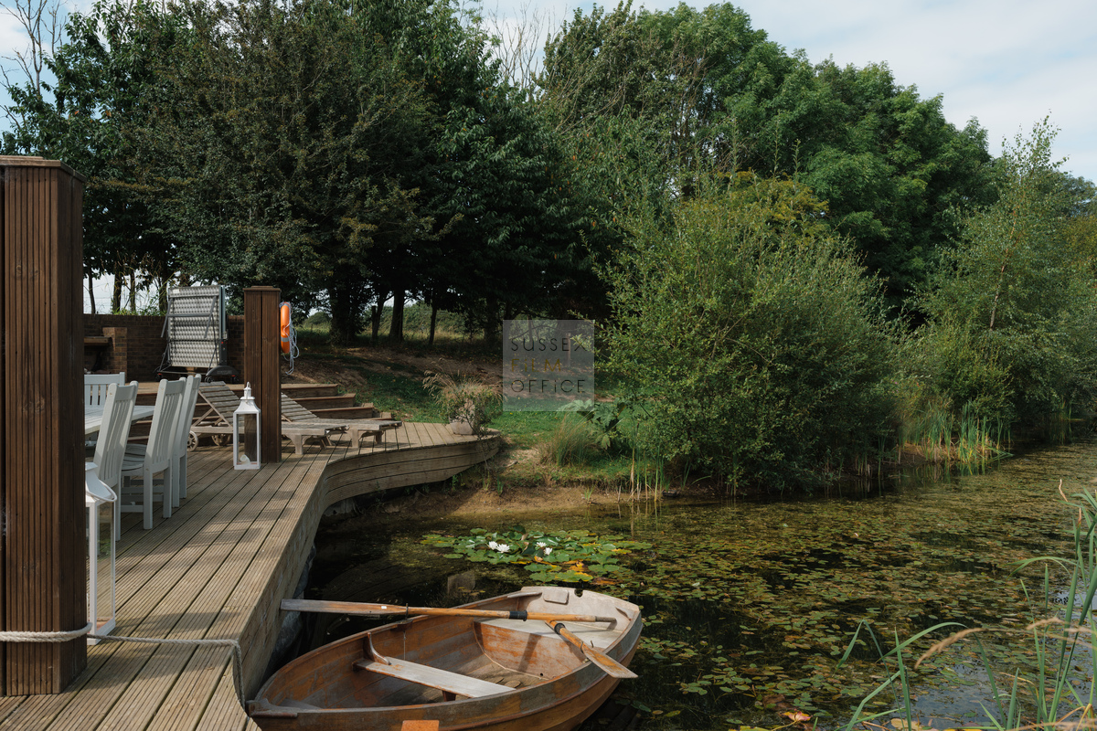 Stunning modern country gated estate set on 16 acres of land in the gorgeous West Sussex countryside. The property, accessed via a sweeping driveway, comprises a large split-level reception hall, cloakroom, 4 reception rooms, kitchen/breakfast room, gym, 5 bedrooms, and 5 ensuite bathrooms. Outside there is a swimming pool, tennis court, formal garden, greenhouse, woodshop, helipad, large patio areas, bluebell woods, young orchard, lake, and parking for around 100 cars on the top field. In addition, next to the lake is a delightful boathouse with an open plan living/kitchen/dining area, bedroom, bathroom, decking/terrace and direct access to the lake. An absolutely stunning and extremely versatile location for filming and photography!