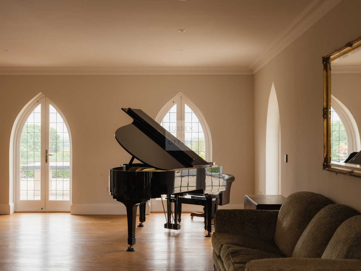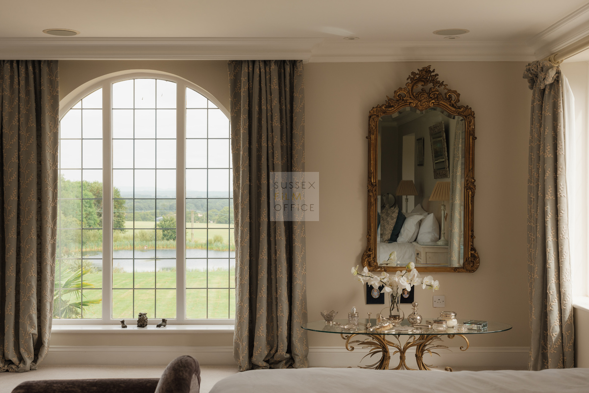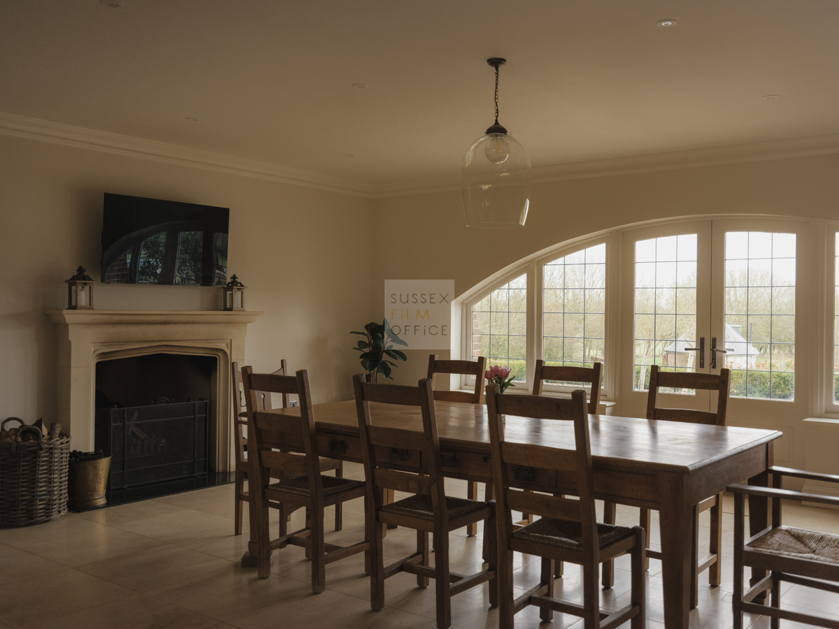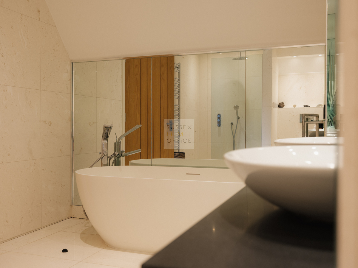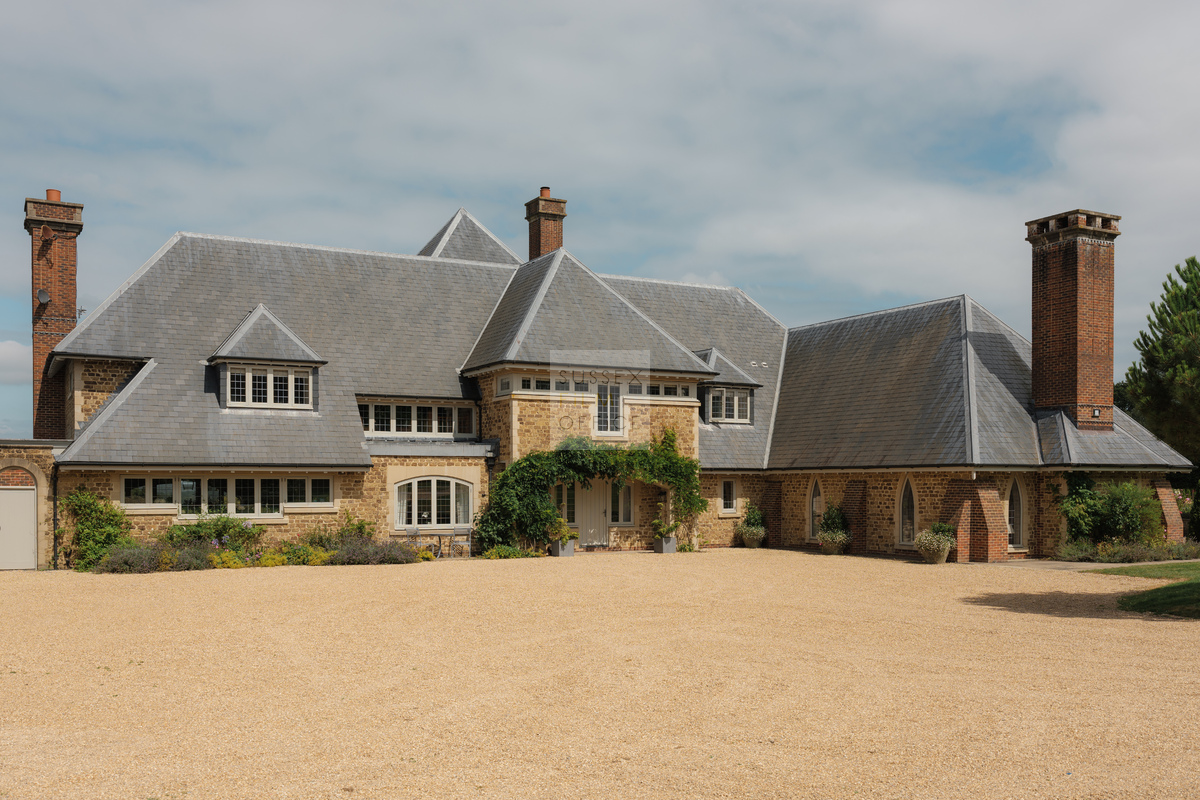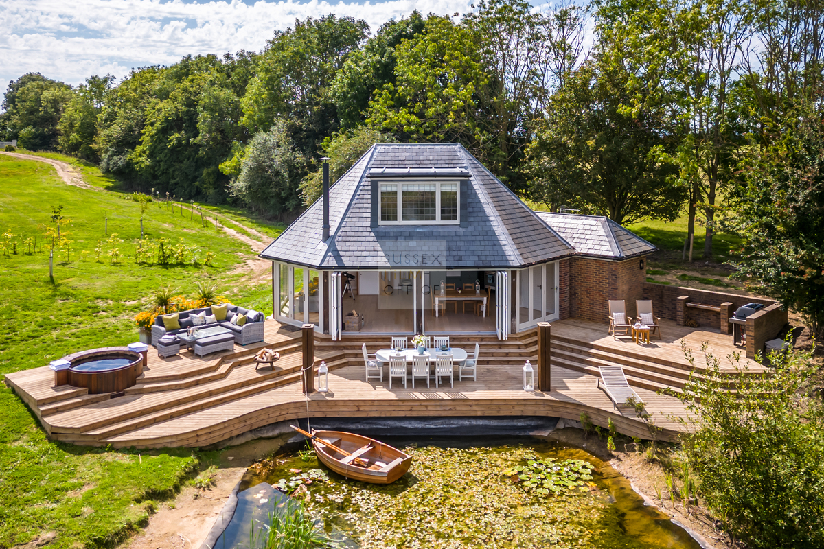 Stunning modern country gated estate set on 16 acres of land in the gorgeous West Sussex countryside. The property, accessed via a sweeping driveway, comprises a large split-level reception hall, cloakroom, 4 reception rooms, kitchen/breakfast room, gym, 5 bedrooms, and 5 ensuite bathrooms. Outside there is a swimming pool, tennis court, formal garden, greenhouse, woodshop, helipad, large patio areas, bluebell woods, young orchard, lake, and parking for around 100 cars on the top field. In addition, next to the lake is a delightful boathouse with an open plan living/kitchen/dining area, bedroom, bathroom, decking/terrace and direct access to the lake. An absolutely stunning and extremely versatile location for filming and photography!
