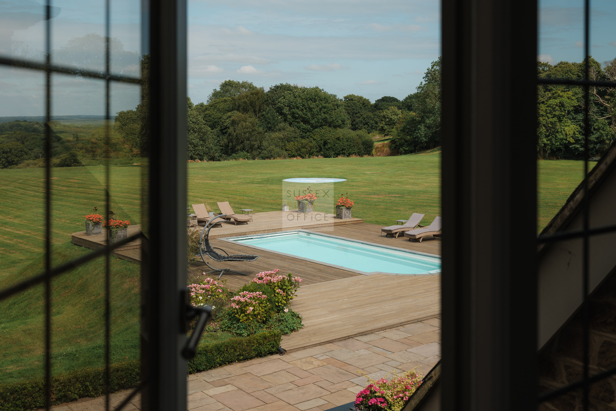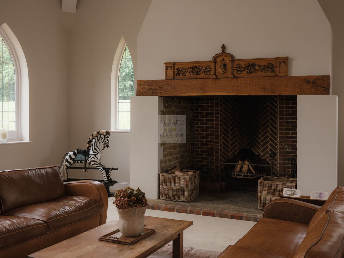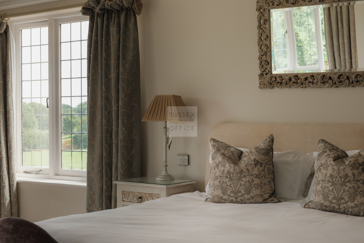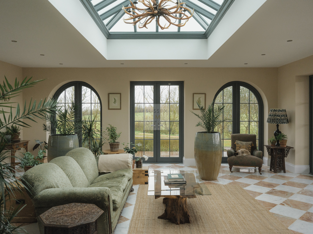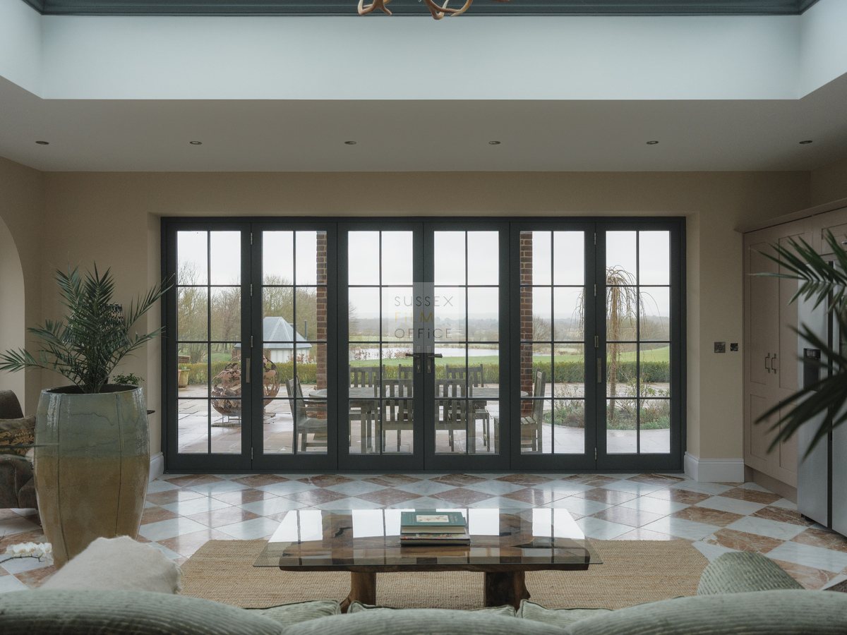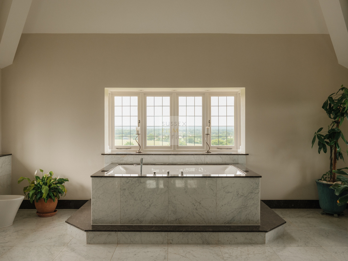 Stunning modern country gated estate set on 16 acres of land in the gorgeous West Sussex countryside. The property, accessed via a sweeping driveway, comprises a large split-level reception hall, cloakroom, 4 reception rooms, kitchen/breakfast room, gym, 5 bedrooms, and 5 ensuite bathrooms. Outside there is a swimming pool, tennis court, formal garden, greenhouse, woodshop, helipad, large patio areas, bluebell woods, young orchard, lake, and parking for around 100 cars on the top field. In addition, next to the lake is a delightful boathouse with an open plan living/kitchen/dining area, bedroom, bathroom, decking/terrace and direct access to the lake. An absolutely stunning and extremely versatile location for filming and photography!