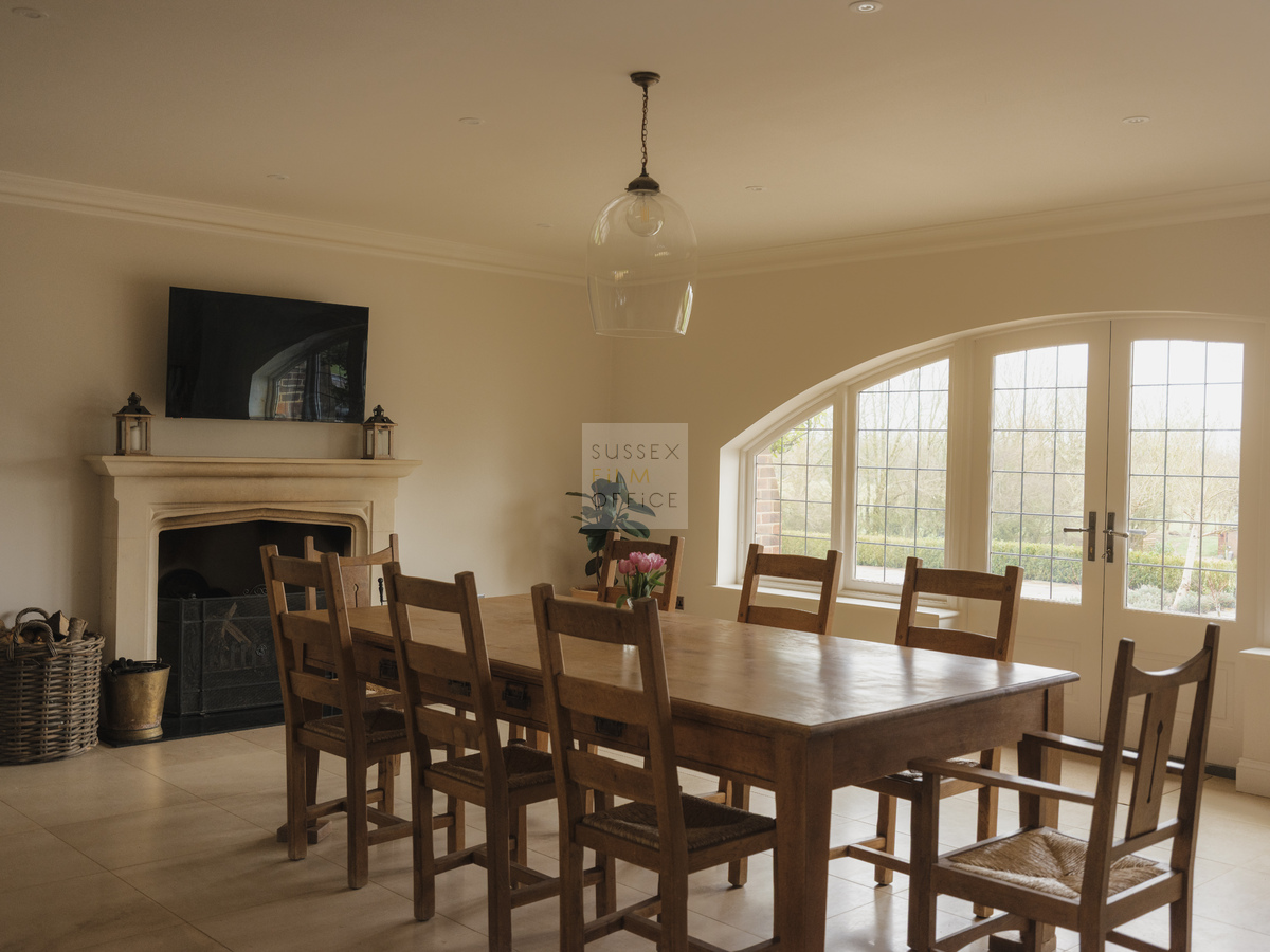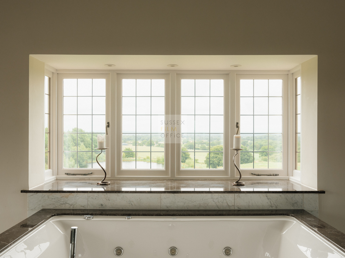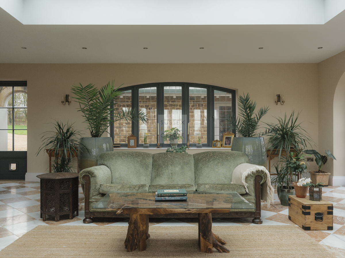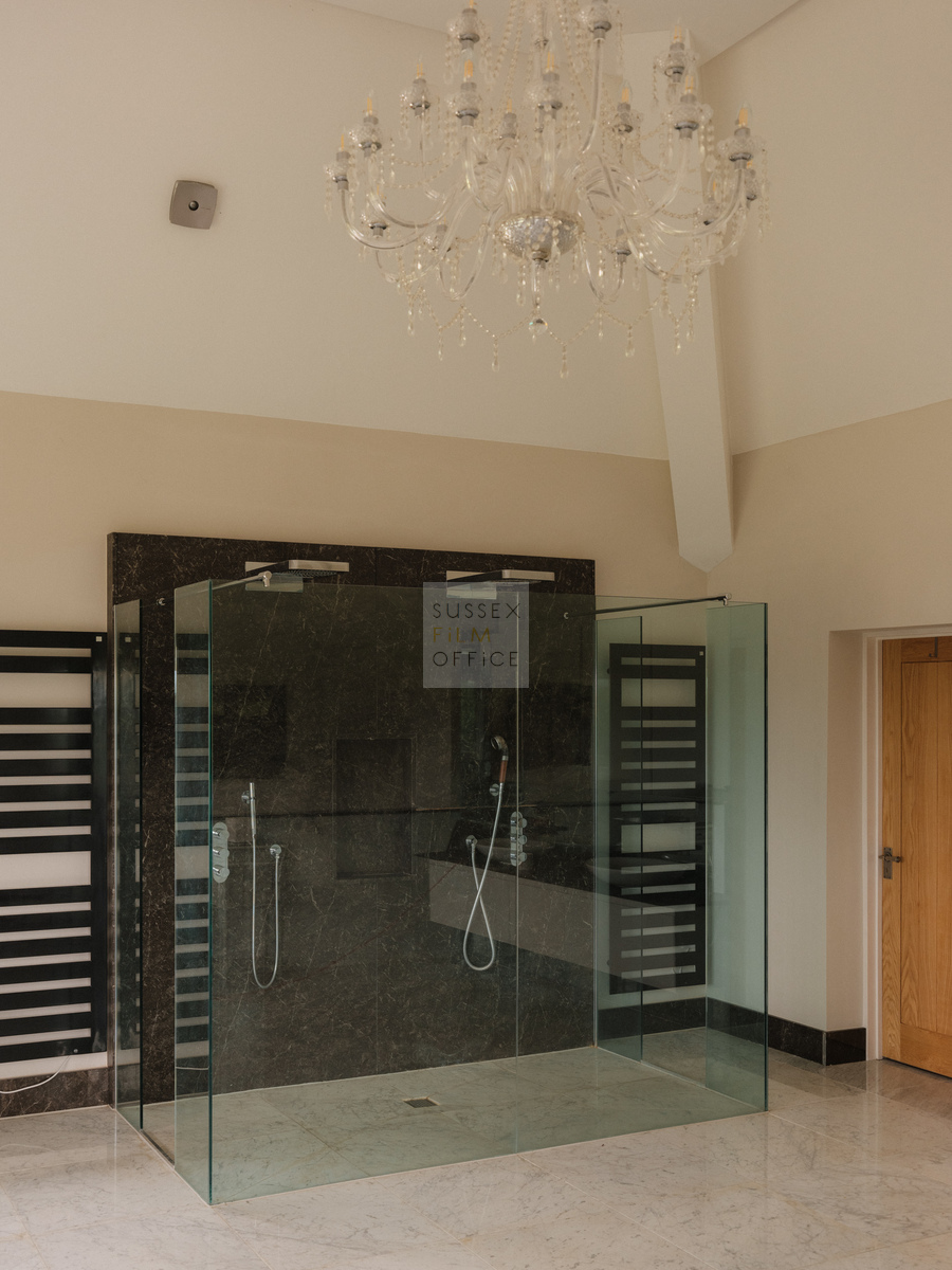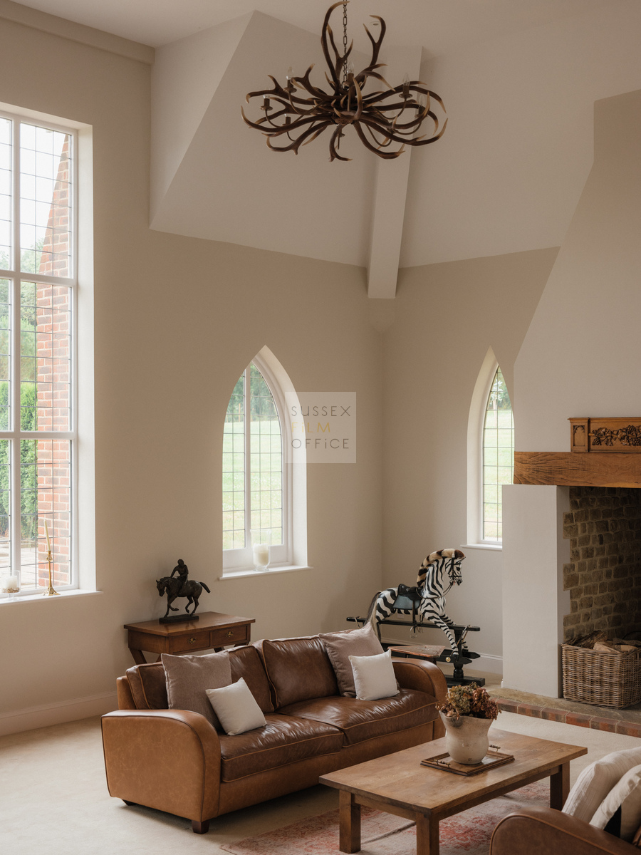 Stunning modern country gated estate set on 16 acres of land in the gorgeous West Sussex countryside. The property, accessed via a sweeping driveway, comprises a large split-level reception hall, cloakroom, 4 reception rooms, kitchen/breakfast room, gym, 5 bedrooms, and 5 ensuite bathrooms. Outside there is a swimming pool, tennis court, formal garden, greenhouse, woodshop, helipad, large patio areas, bluebell woods, young orchard, lake, and parking for around 100 cars on the top field. In addition, next to the lake is a delightful boathouse with an open plan living/kitchen/dining area, bedroom, bathroom, decking/terrace and direct access to the lake. An absolutely stunning and extremely versatile location for filming and photography!