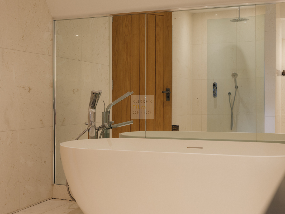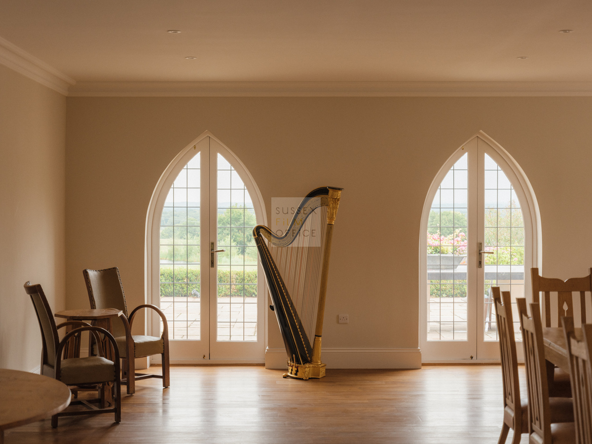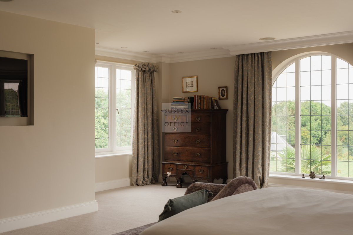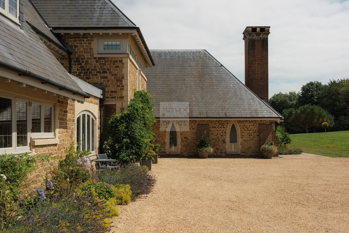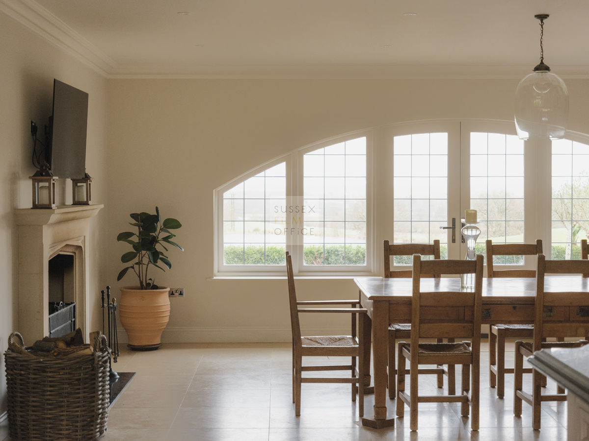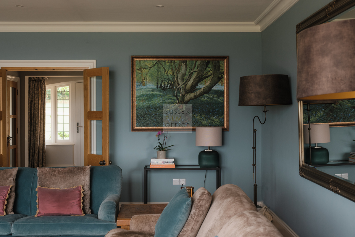 Stunning modern country gated estate set on 16 acres of land in the gorgeous West Sussex countryside. The property, accessed via a sweeping driveway, comprises a large split-level reception hall, cloakroom, 4 reception rooms, kitchen/breakfast room, gym, 5 bedrooms, and 5 ensuite bathrooms. Outside there is a swimming pool, tennis court, formal garden, greenhouse, woodshop, helipad, large patio areas, bluebell woods, young orchard, lake, and parking for around 100 cars on the top field. In addition, next to the lake is a delightful boathouse with an open plan living/kitchen/dining area, bedroom, bathroom, decking/terrace and direct access to the lake. An absolutely stunning and extremely versatile location for filming and photography!