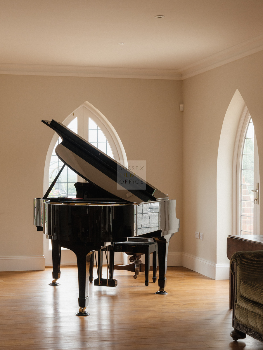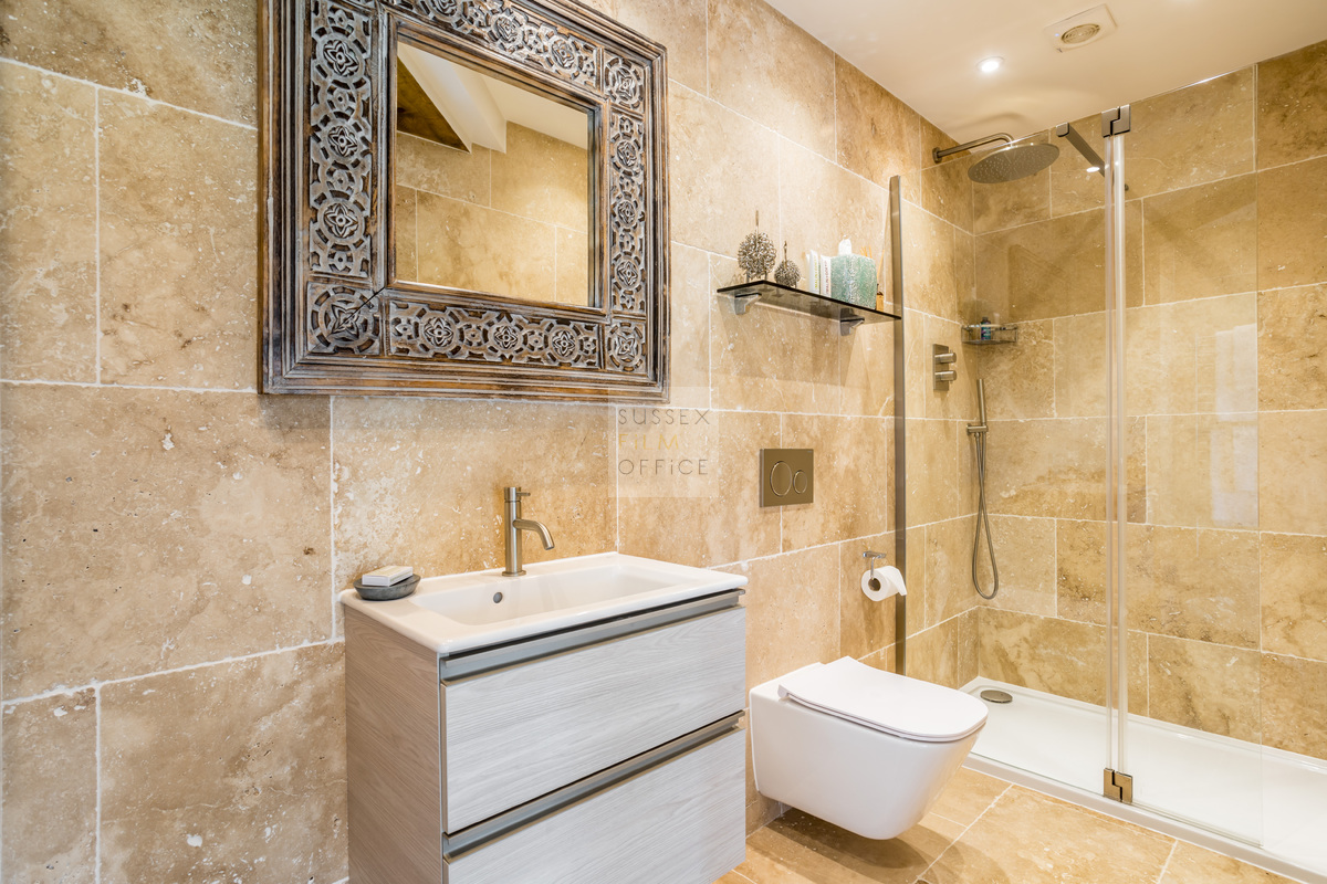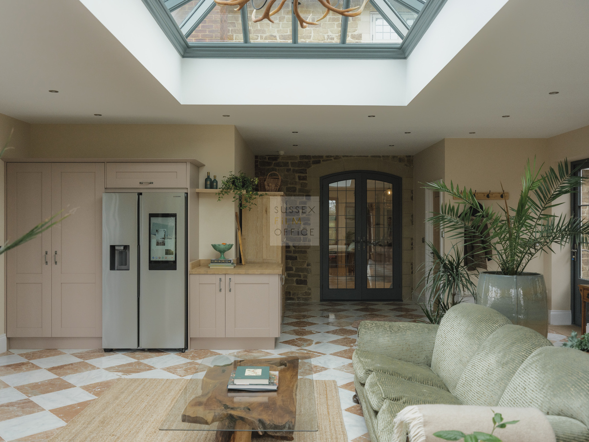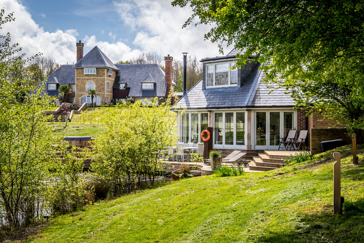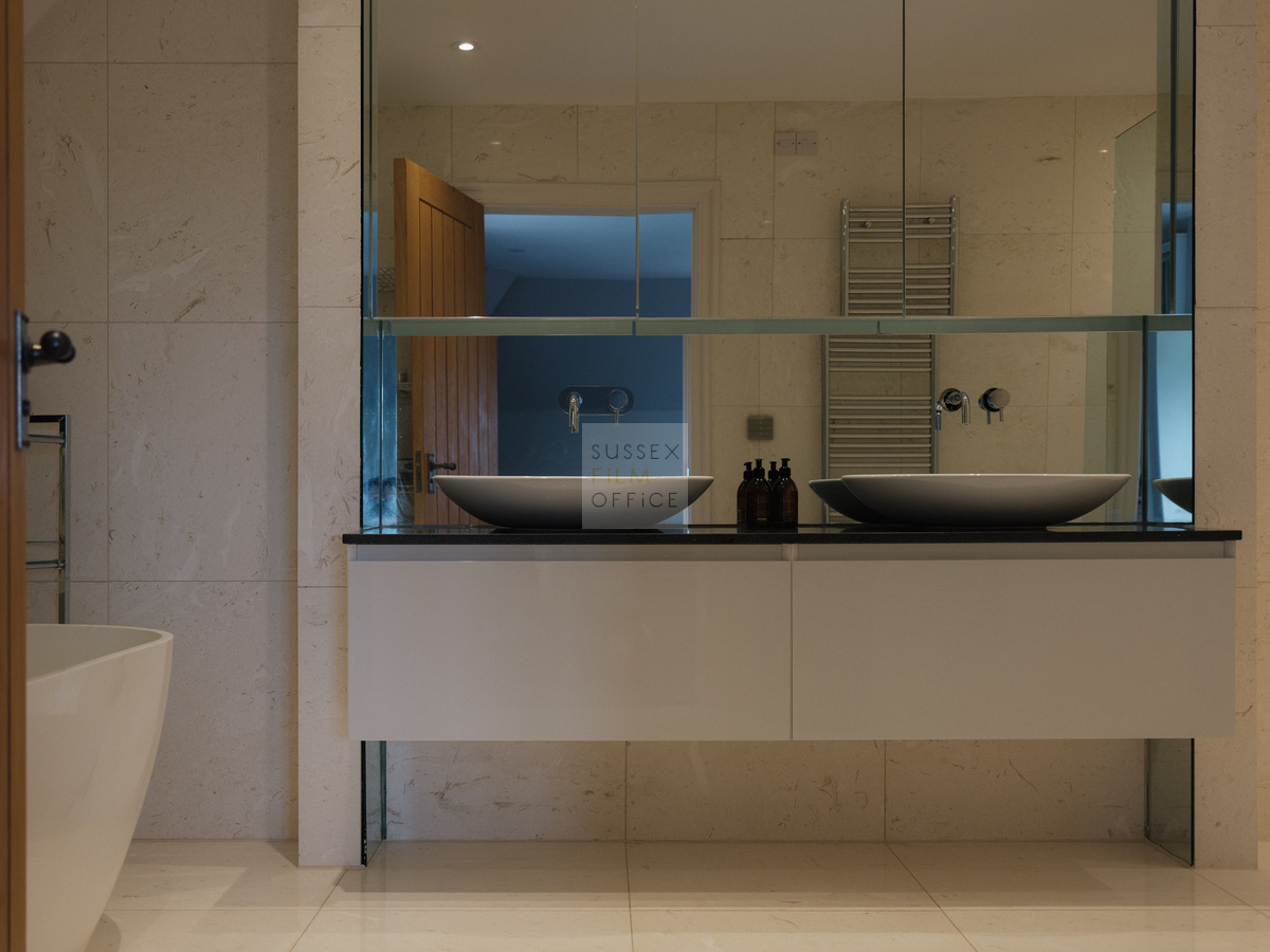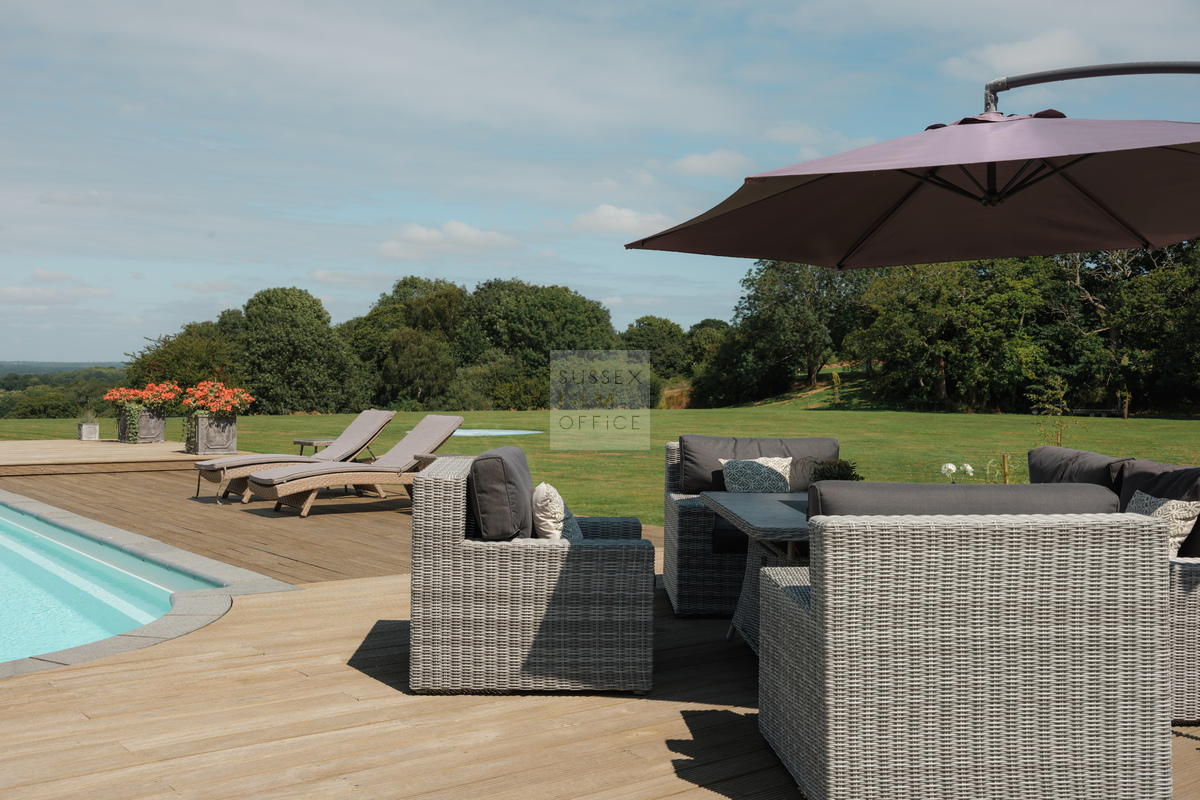 Stunning modern country gated estate set on 16 acres of land in the gorgeous West Sussex countryside. The property, accessed via a sweeping driveway, comprises a large split-level reception hall, cloakroom, 4 reception rooms, kitchen/breakfast room, gym, 5 bedrooms, and 5 ensuite bathrooms. Outside there is a swimming pool, tennis court, formal garden, greenhouse, woodshop, helipad, large patio areas, bluebell woods, young orchard, lake, and parking for around 100 cars on the top field. In addition, next to the lake is a delightful boathouse with an open plan living/kitchen/dining area, bedroom, bathroom, decking/terrace and direct access to the lake. An absolutely stunning and extremely versatile location for filming and photography!