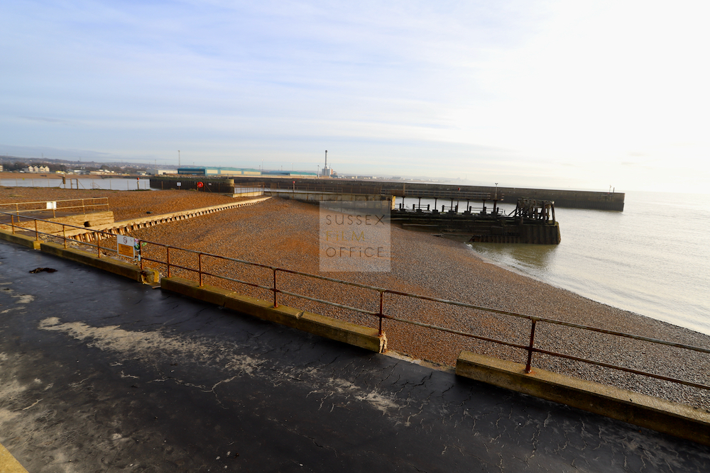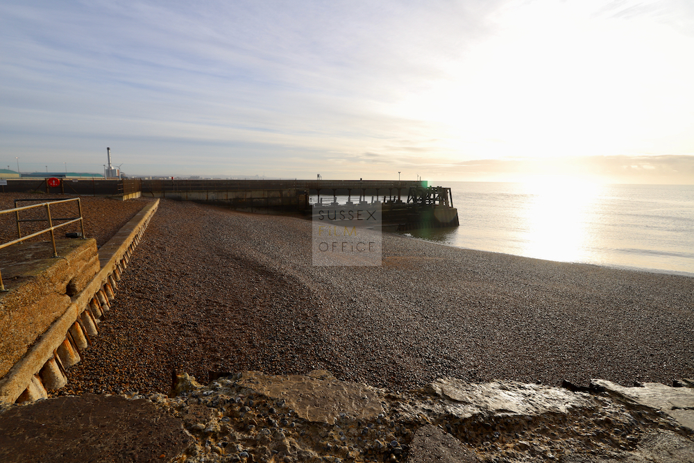 Shingle beach located at the mouth of the River Adur with views across a harbour to residential and industrial areas. Great location for shingle beach shoots.