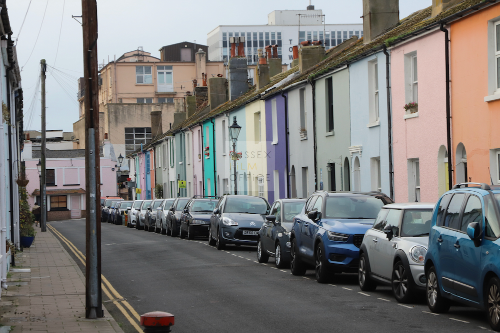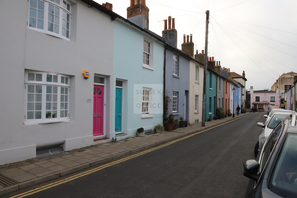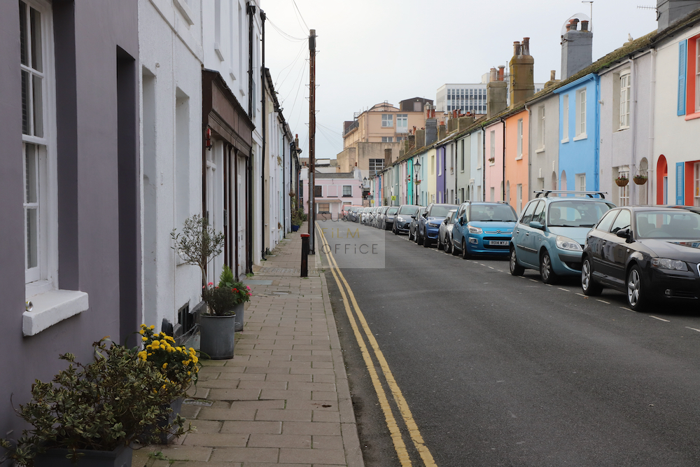 Residential street in a popular coastal city. With its colourful terraced houses and close proximity to the train station, this is a great location for city residential filming.