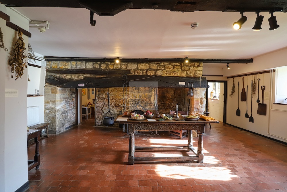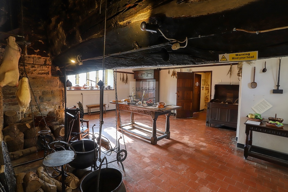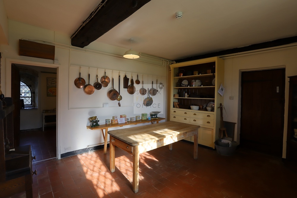 Historic kitchen located in a Tudor house. Features include a huge fireplace areas with exposed wooden beams and brickwork, authentic furniture and equipment, tiled floor and plenty of character. As well as offering a fascinating insight into the customs of the time, this is a fantastic location for filming and photography.