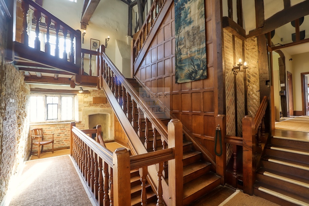 A beautiful T-shaped Tudor priory house with parts dating back to 1229, set on an island surrounded by a medieval moat in the Cuckmere Valley. Features include stunning grounds, restored water mill, oak beam Grade II listed Elizabethan Great Barn, 14th century gatehouse, attic, wood and parquet flooring, stone fireplace, wall panelling, exposed beams and timber frame barn. With its charm and many original features and furniture, this is a stunning and authentic location for historical filming and photography. Check out this virtual walk around: Barn: https://3dmediasolutions.co.uk/portfolio-items/michelham-priory-barn/ Gatehouse: https://3dmediasolutions.co.uk/portfolio-items/michelham-priory-gatehouse/